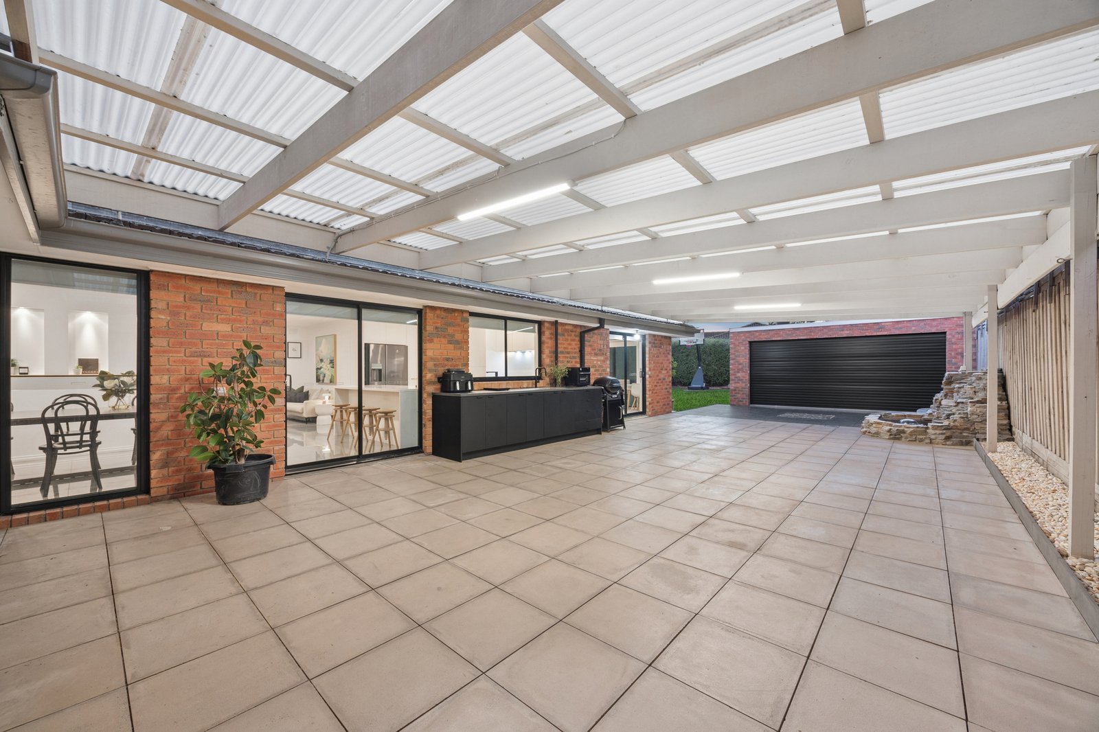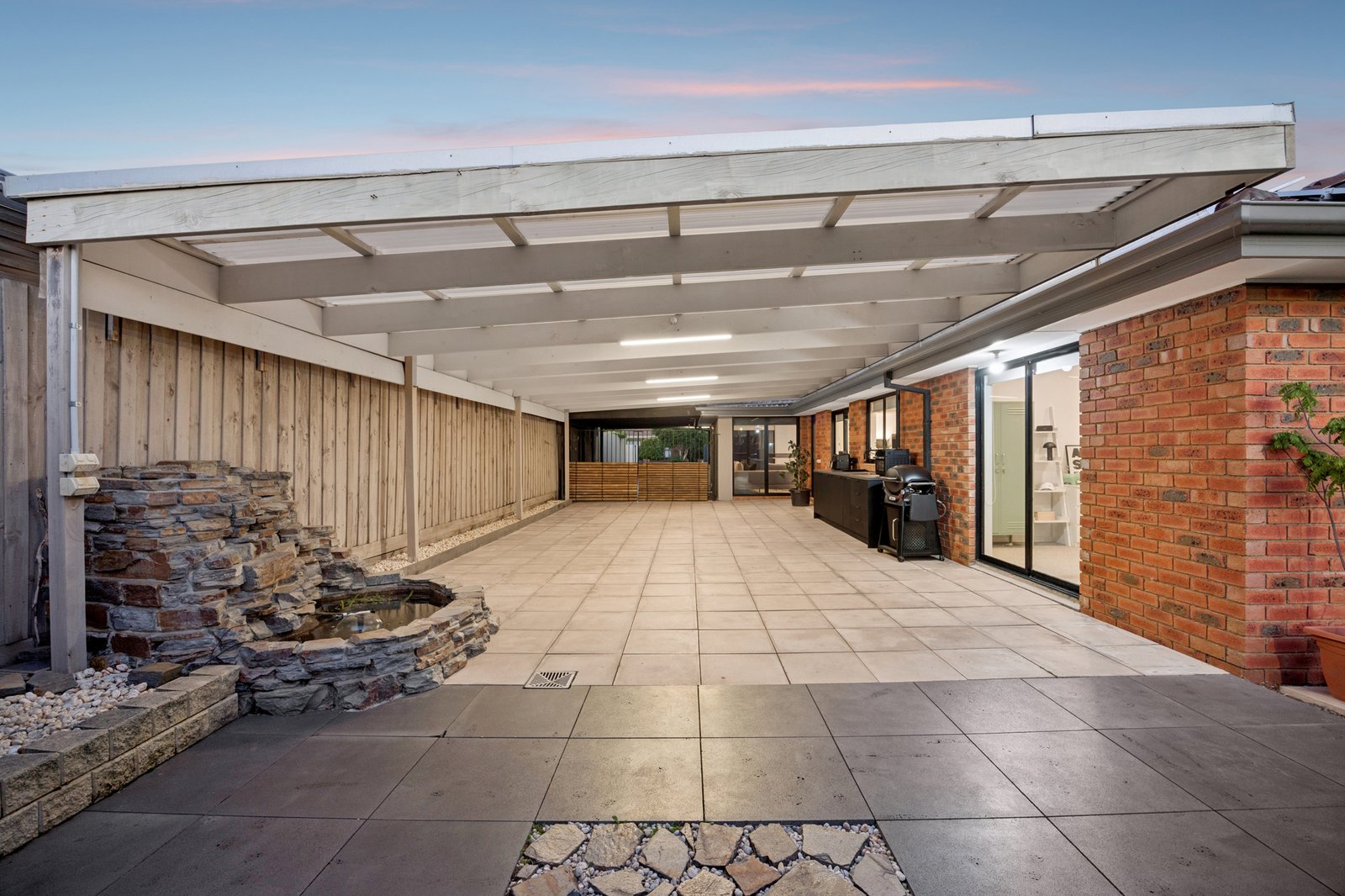 Outside, a huge undercover area with an in-built kitchen is a space to enjoy all year long, while a water feature, double auto garage and storage area are also offered – all tucked behind a remote-controlled gate with new silent motor.