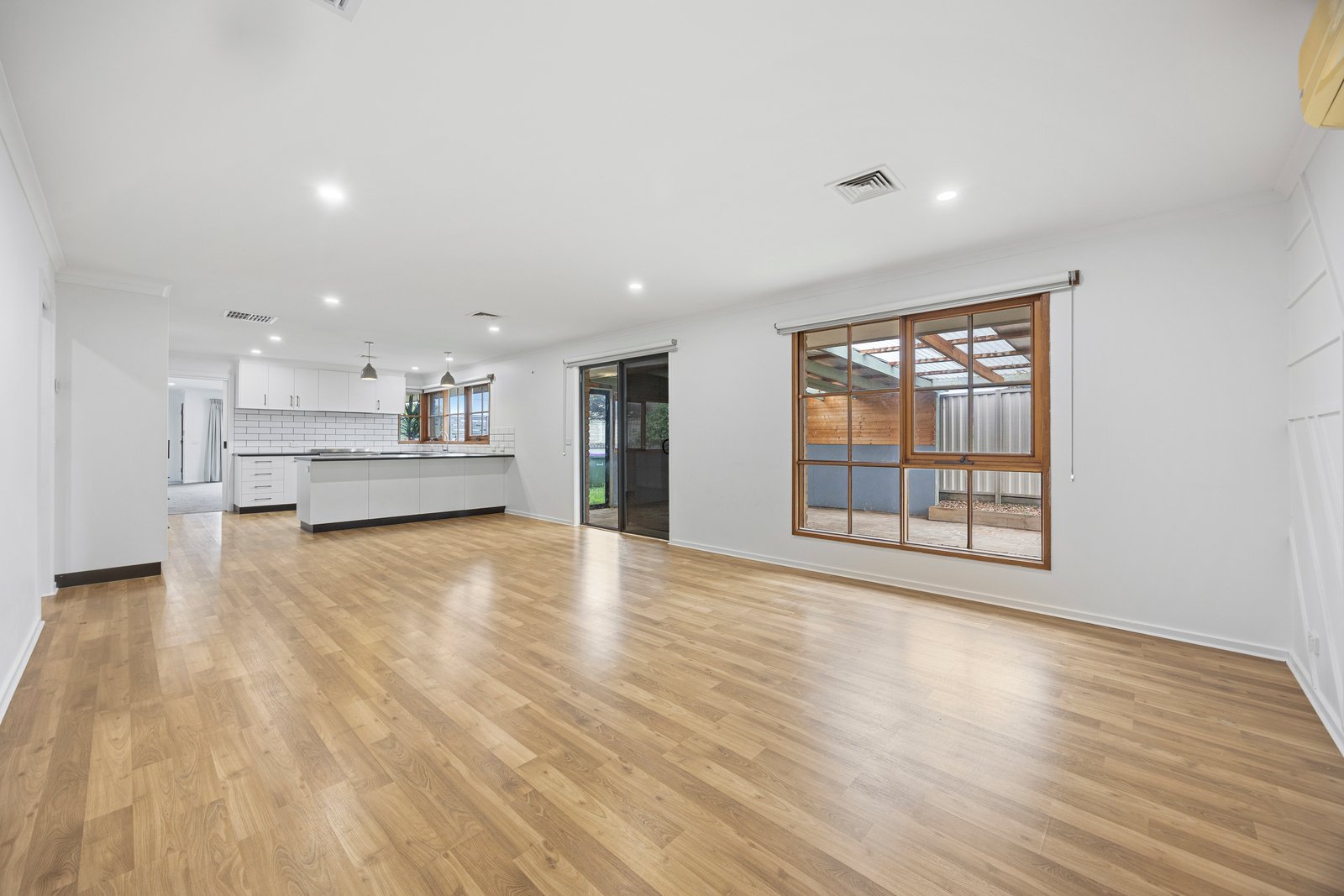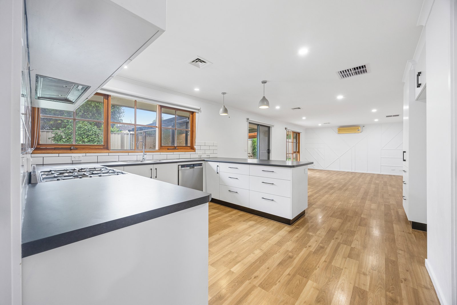 - Open plan kitchen/dinning/living area with split system