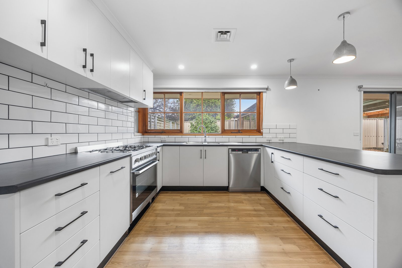 - Kitchen with 900mm gas cooktop, electric oven and dishwasher