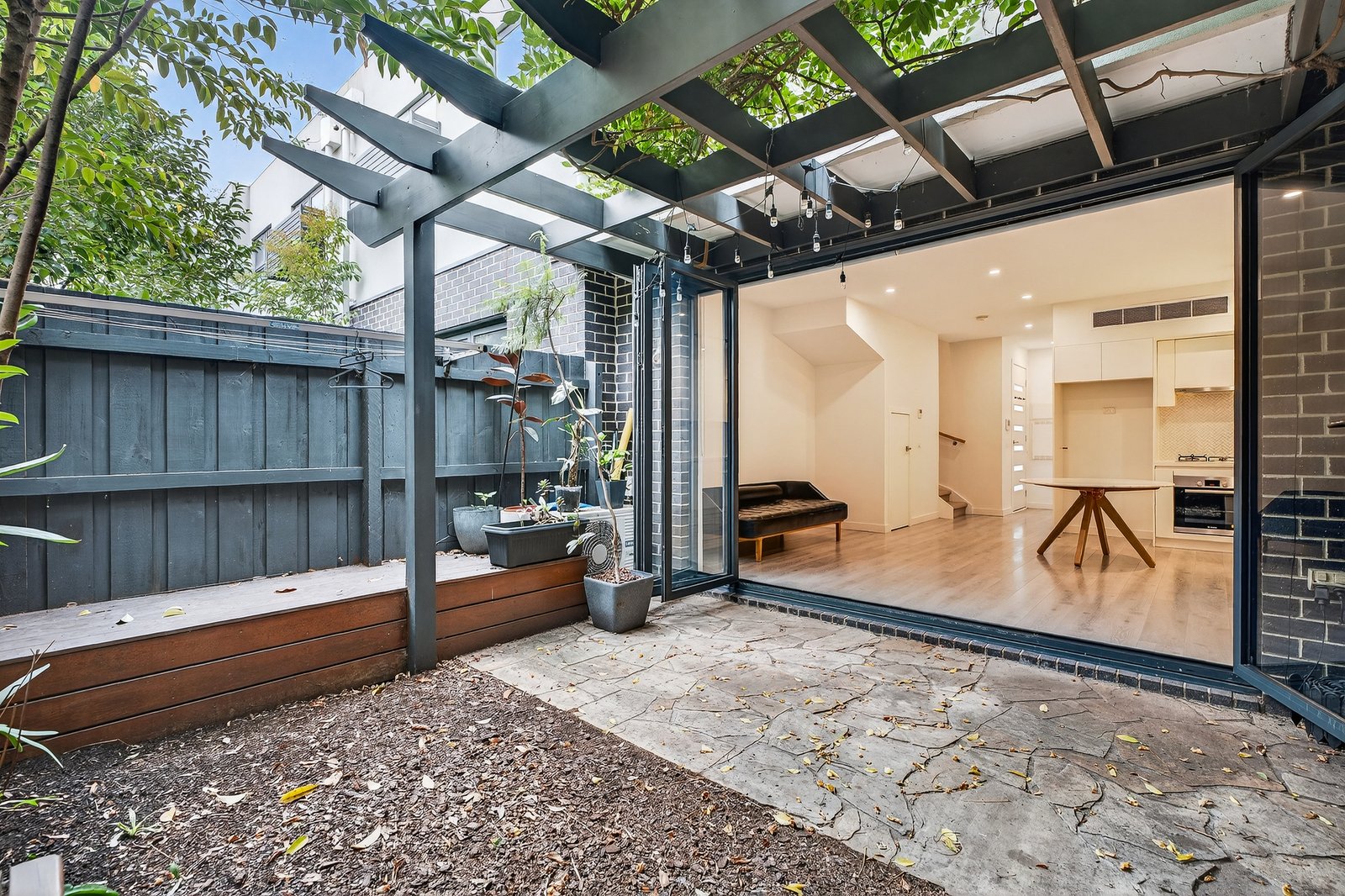 The generous open-plan living and dining zone flows seamlessly to a private patio, creating an inviting indoor and outdoor sanctuary ideal for low-maintenance entertaining. The sleek, well-curated kitchen showcases stone benchtops, quality appliances and a dishwasher.