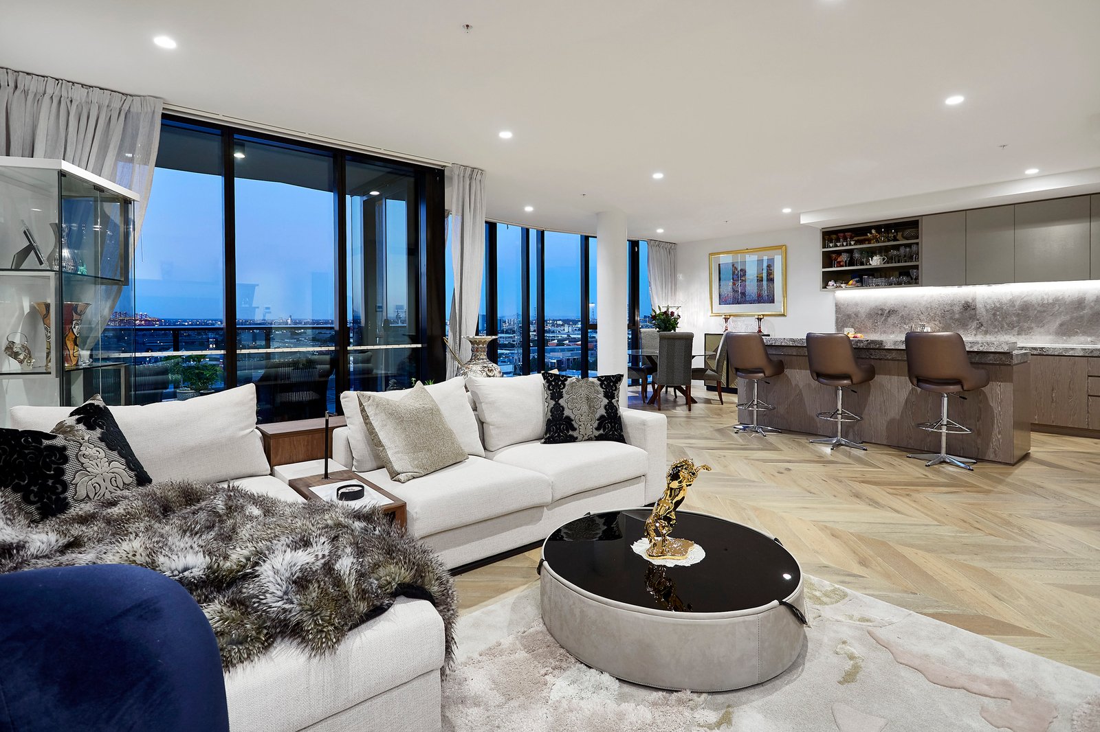 This exceptional four bedroom, three bathroom penthouse sets a new benchmark for luxury apartment living in Port Melbourne. Perched on the 10th floor of the prestigious PM Apartments complex, the residence delivers expansive proportions, extraordinary natural light and impeccable attention to detail across approximately 224sqm of indoor and outdoor living.