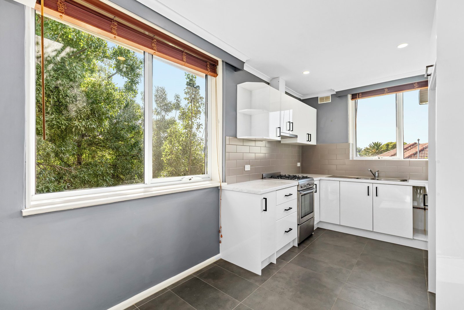 The updated kitchen is appointed with quality stainless steel appliances and enjoys a leafy outlook. The centrally located bathroom is stylishly finished, featuring a shower bath, along with heated towel rails. A Euro laundry provides additional storage, a separate sink, and space for a front-load washer, while a separate toilet adds further convenience.
