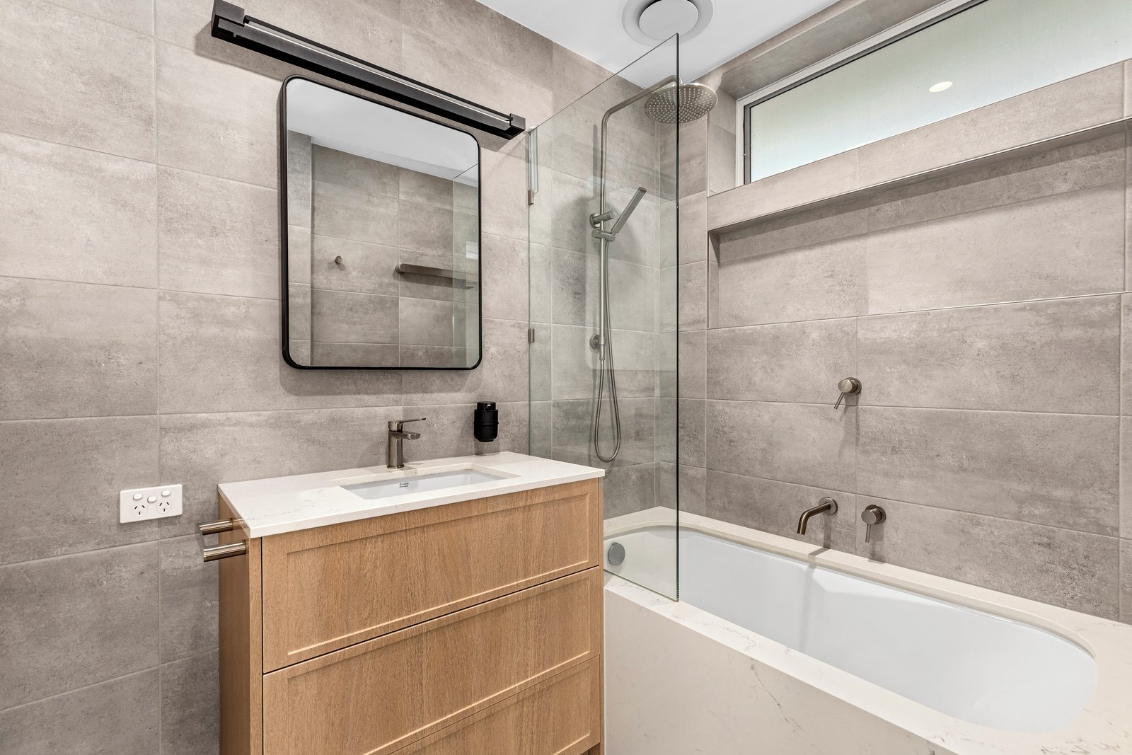 Accommodation includes two oversized bedrooms, both with ceiling fans and excellent storage. One bedroom also features a built-in desk, additional cabinetry, and reverse cycle heating/cooling, ideal for those working or studying from home.