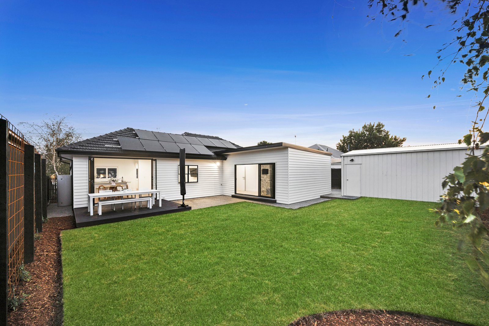 Additional home features include Tesla EV Charger, extra wide driveway to allow for multiple cars to be parked off street, keypad entry, ducted heating and refrigerated cooling throughout, 5kW solar system for energy efficiency, and a well-appointed laundry continuing in premium finishes. Outside, the north-facing deck and paved patio provide a private zone for relaxing in the sun or entertaining, overlooking a lush lawn area with plenty of space for kids or pets to play. Electric gate entry and a long driveway to accommodate secure off-street parking, with garaging at the rear.