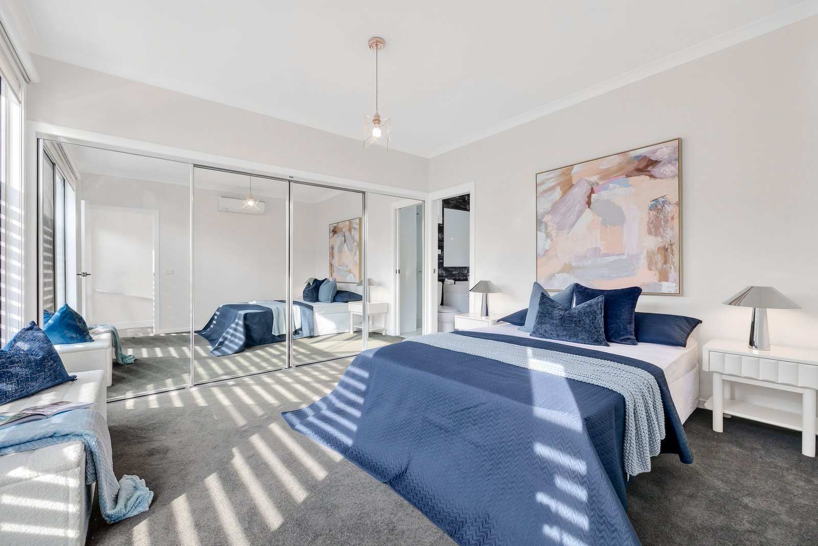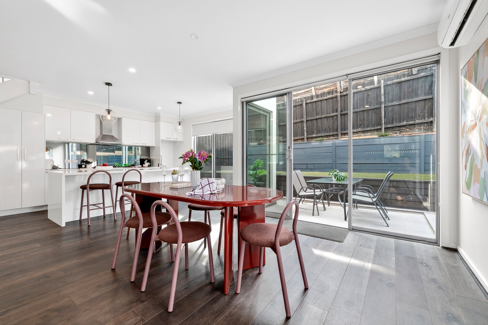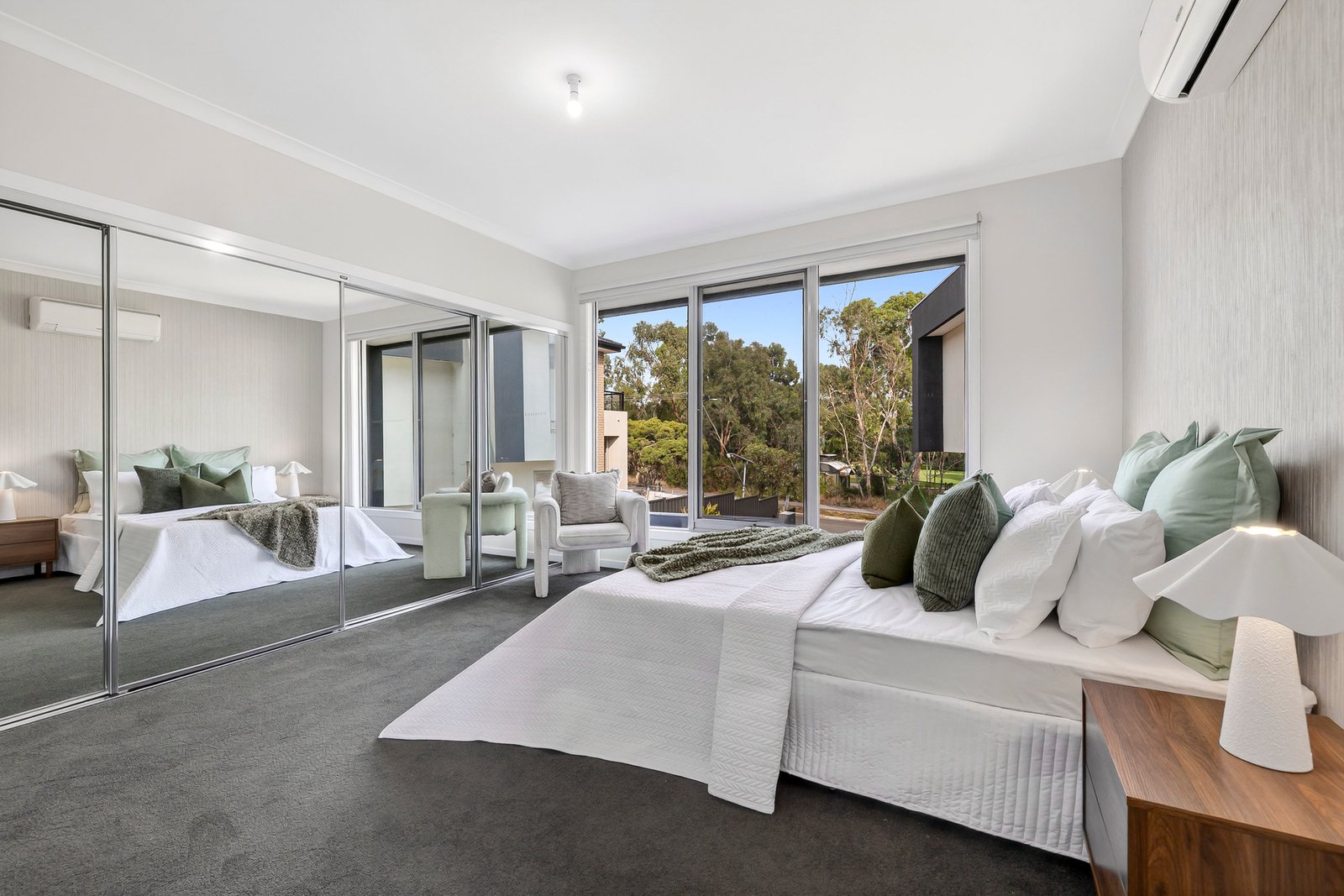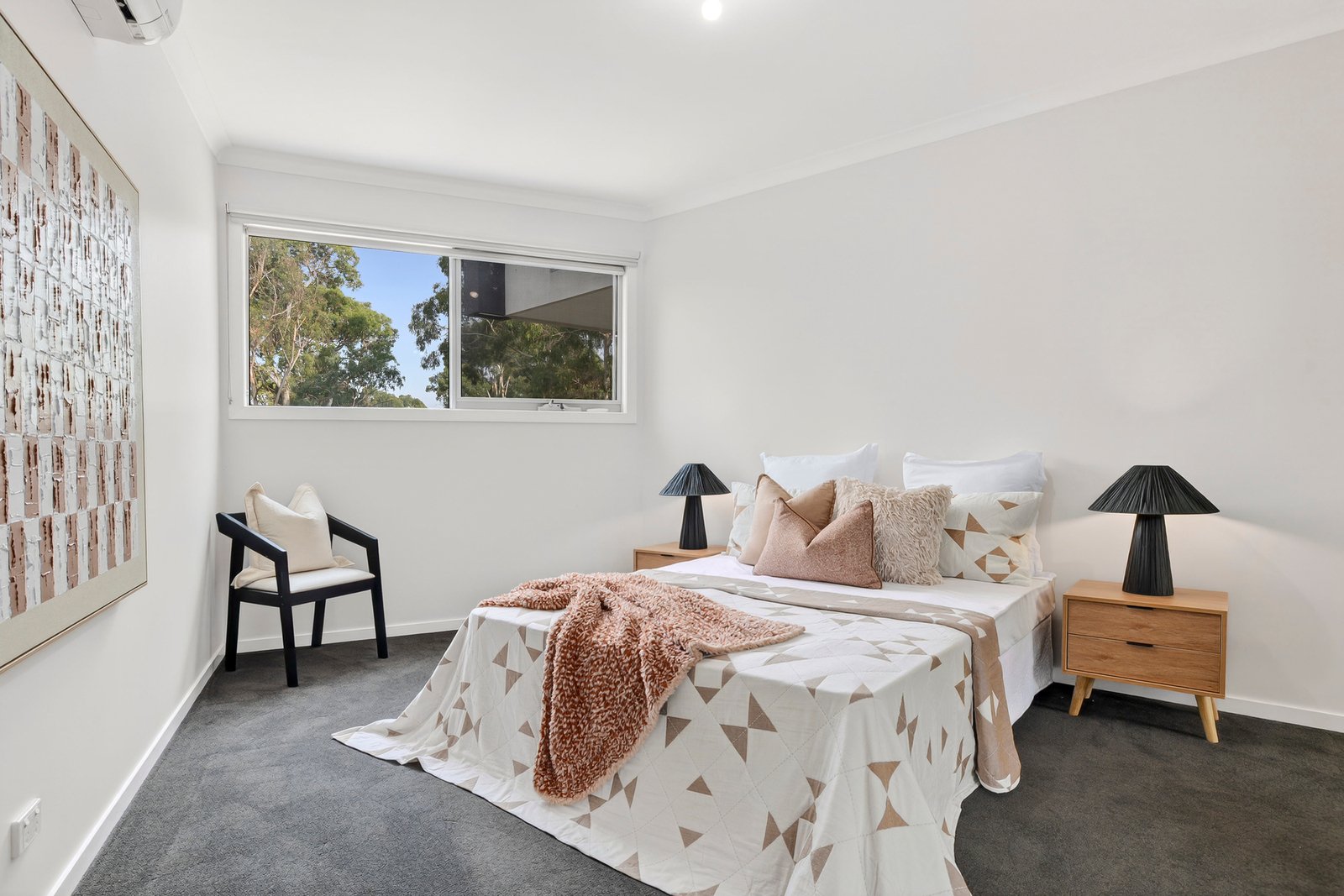 Welcomed on the main floor by a lavishly large living zone that’s framed with extensive glazing overlooking the gardens that envelope it, this home instantly delivers an inviting sense of ease and relaxation. Complimented by a joyfully bright kitchen with gas cooking, dishwasher, terrific storage and a waterfall stone island bench to spread out across.
