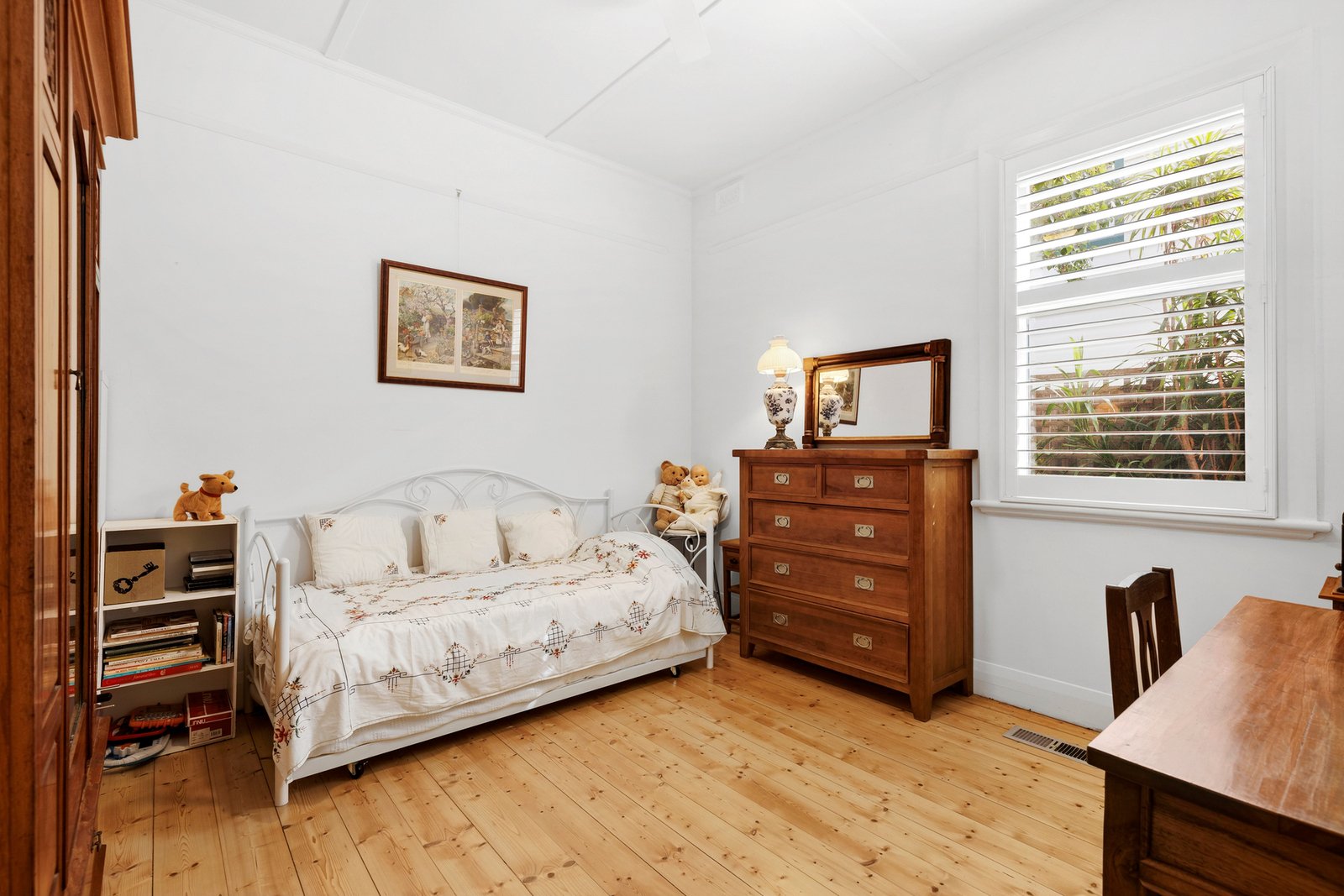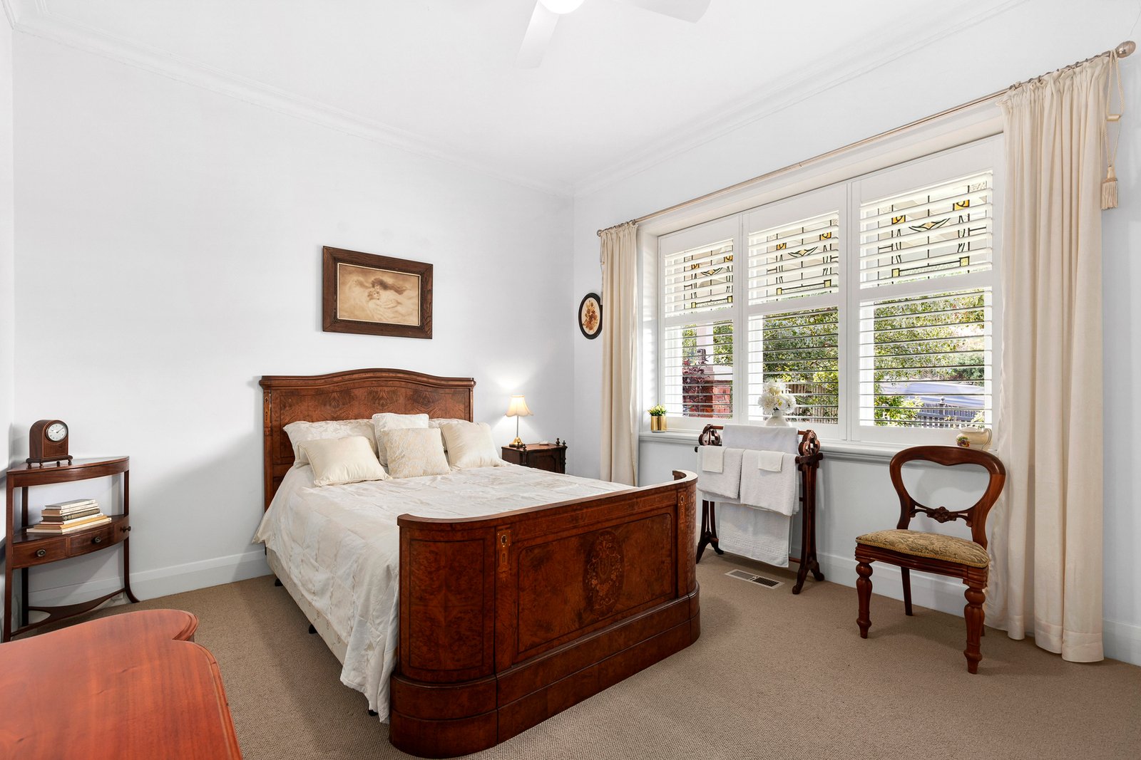 Set amongst flourishing gardens, the bungalow façade features a grand verandah with classic tessellated tiles. Inside, the entry introduces high ceilings, polished timber floors, pendant lighting and stunning ornate ceiling detail, showcasing all the charm of its era. The main bedroom features a beautiful bay window, plantation shutters, built-in robes and an original fireplace, bedroom two, features stained glass windows, a picturesque garden outlook and built-in robes, with a third bedroom providing a versatile space of generous size. The central family bathroom is well positioned to service the bedroom zone.