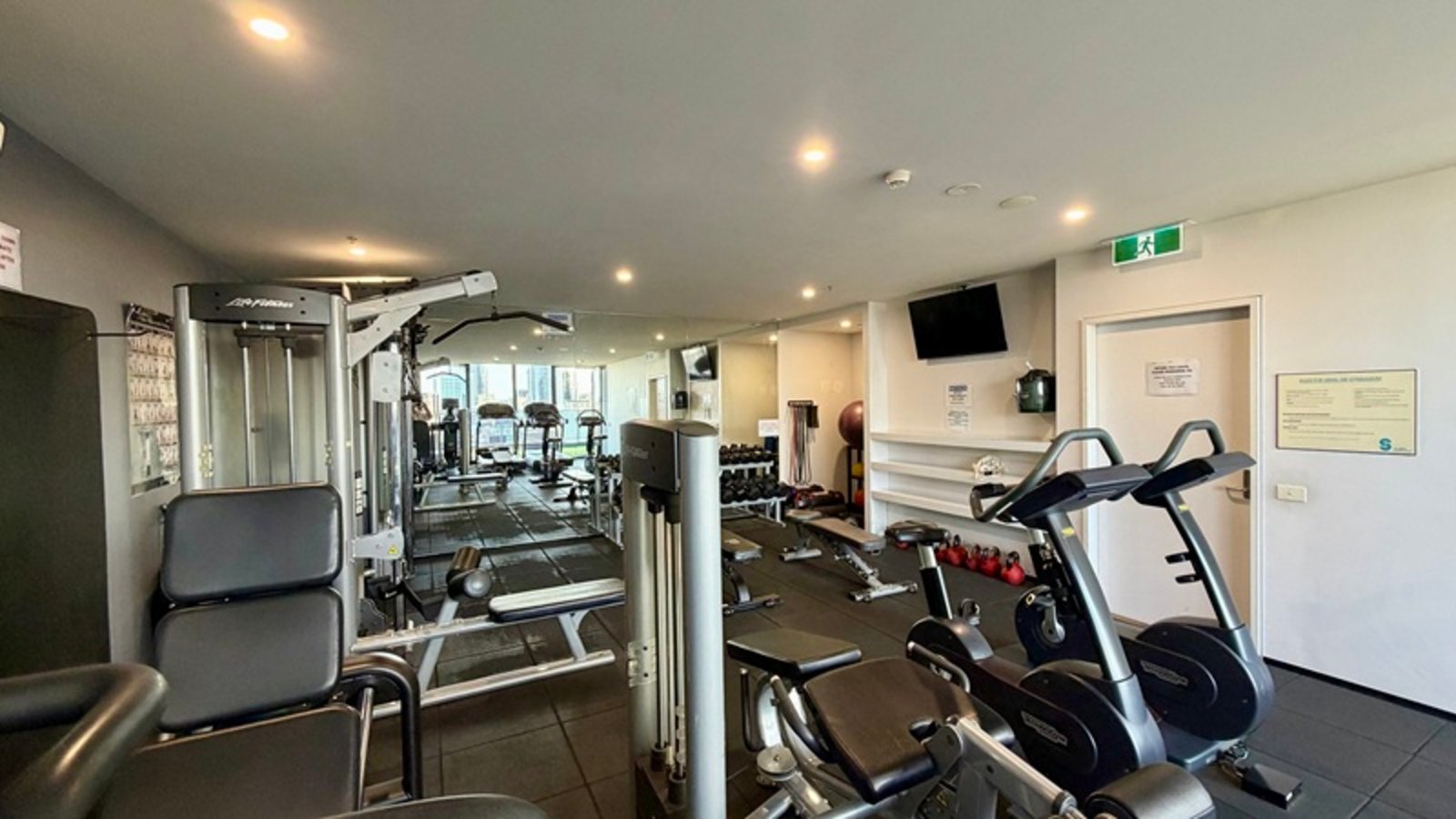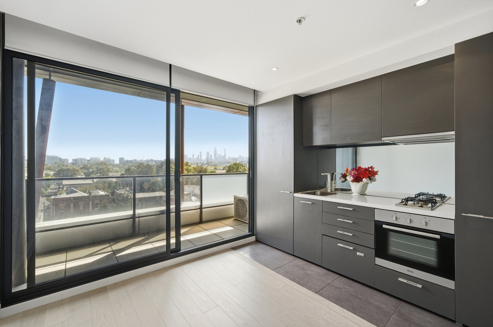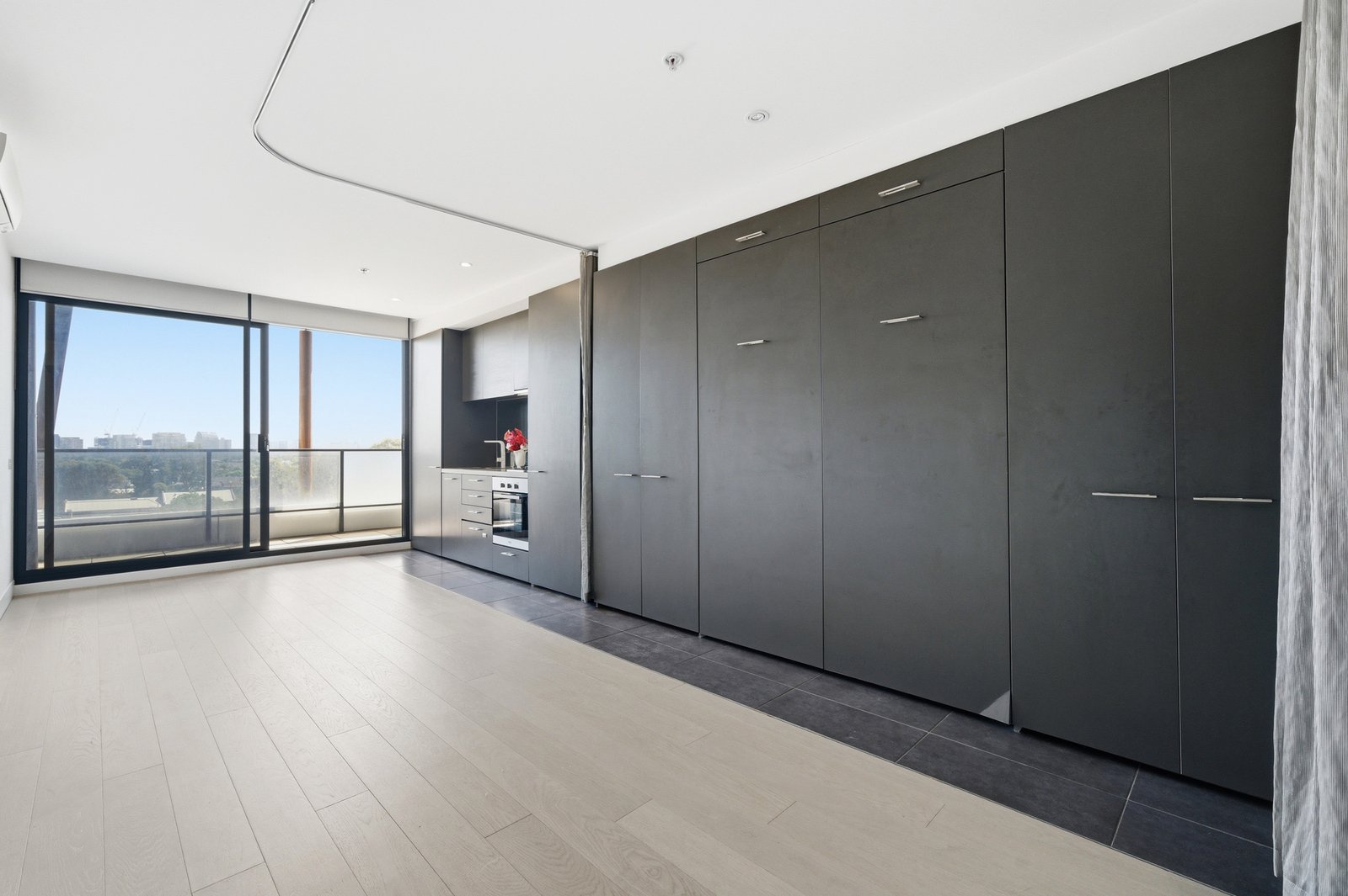 Thoughtfully designed to maximise space and natural light, the open-plan layout features a versatile fold-out bed system that can be neatly concealed to enhance the living area—creating a sense of separation between living and sleeping zones. Generous built-in storage complements a fluid connection to a private balcony boasting sweeping views across to Melbourne’s vibrant CBD skyline, an ideal setting to unwind or entertain while appreciating the dazzling city lights.