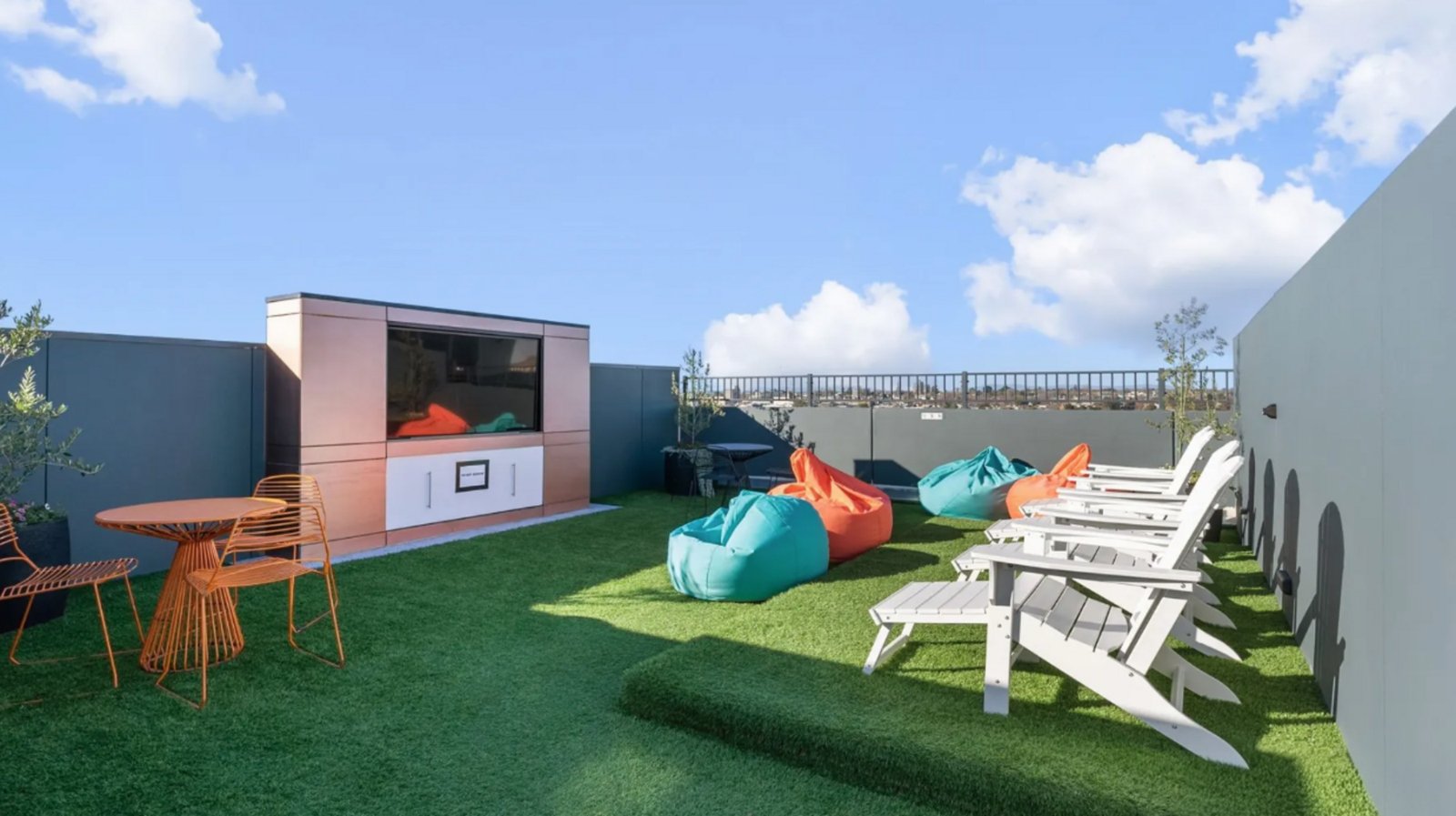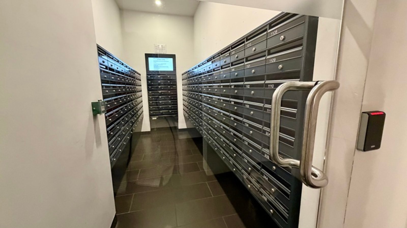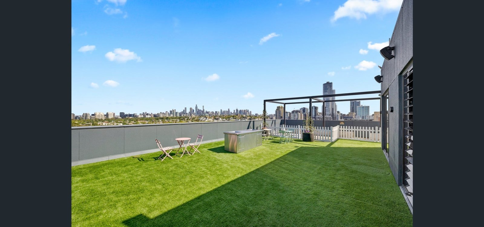 Residents enjoy exclusive access to premium amenities including a rooftop terrace with BBQ facilities and panoramic views, a fully equipped gym, stylish communal lounges, library spaces, secure entry, secure mailroom with controlled access doors, and on-site building management.
