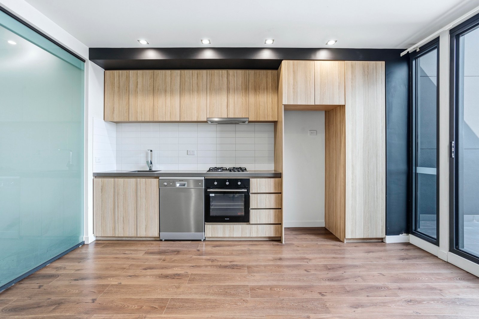 Inside, warm timber flooring and a thoughtfully designed open-plan layout make the most of every inch of the space. The kitchen is well-equipped with quality appliances and generous storage, opening naturally into the living and dining zone and through to the private balcony. The well-proportioned bedroom features a mirrored built-in robe, while the central bathroom is finished to a high standard and cleverly incorporates a concealed laundry, keeping things neat and practical without compromise.