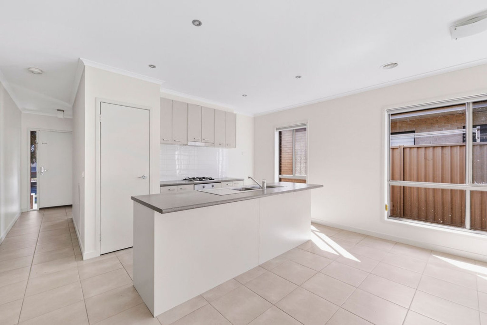Step inside to a thoughtfully designed floorplan that prioritises space and functionality. At the heart of the home, a light-filled open-plan kitchen, dining, and living zone creates the perfect hub for family life and entertaining. The modern kitchen showcases sleek neutral finishes, quality appliances including a gas cooktop, oven, dishwasher, double sink, and generous pantry storage.