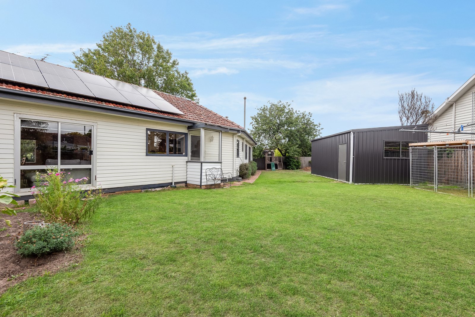 Nestled behind established gardens, the charming façade is welcoming in appeal. A wide entry hall leads into the light-filed living and dining area, featuring timber flooring, an original brick mantel and timber wall paneling, creating a warm and inviting atmosphere throughout. Split system heating and cooling ensures year-round comfort, complemented by day and night blinds and solar panels for optimum energy efficiency. The kitchen and meals area is positioned at the heart of the home, equipped with a modern 600mm oven and cooktop, servery window to the living area for easy everyday living and entertaining, and a view to the backyard - ideal for keeping an eye on the kids or pets at play.