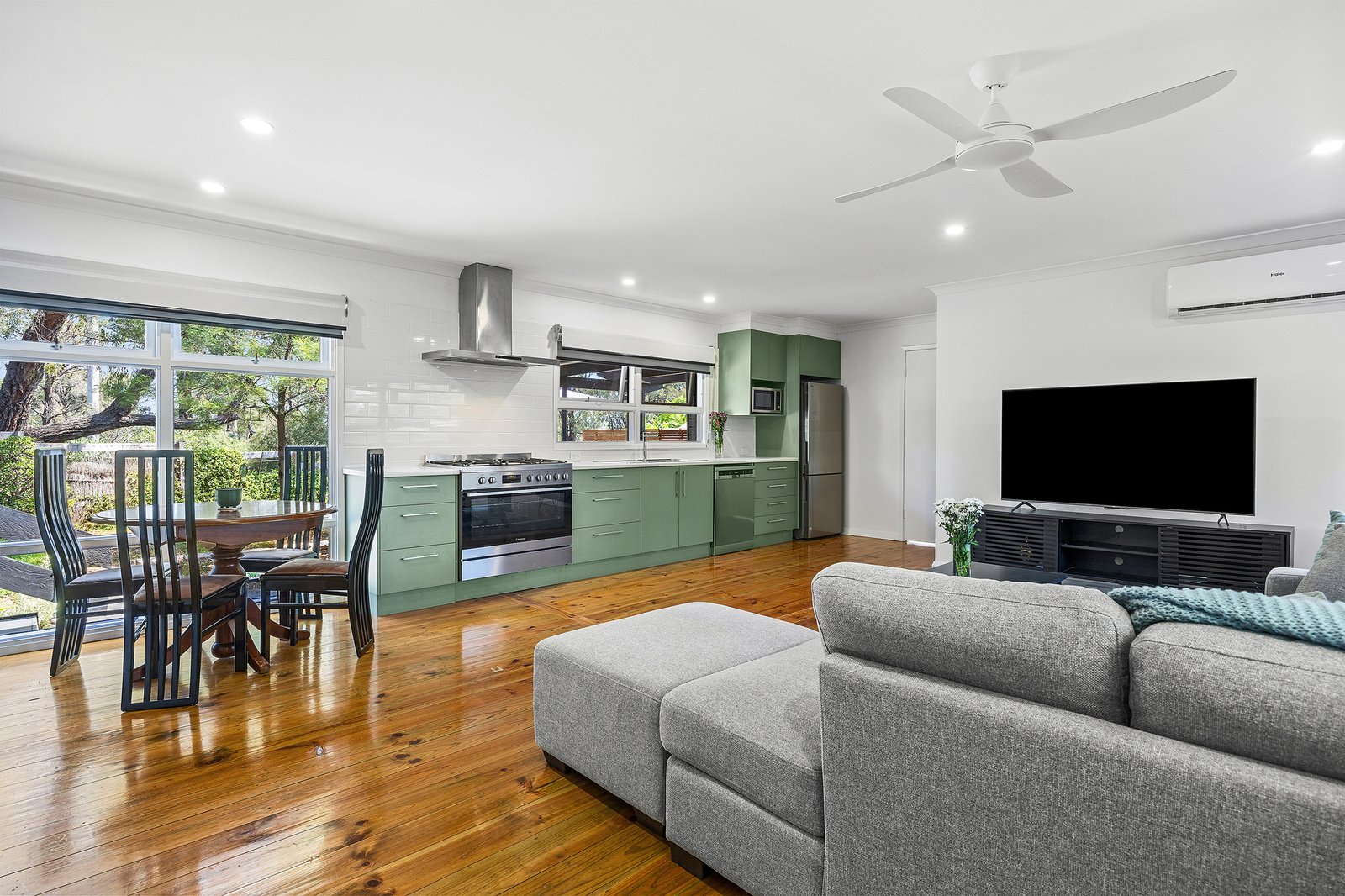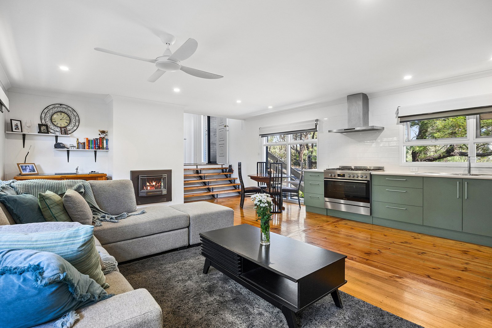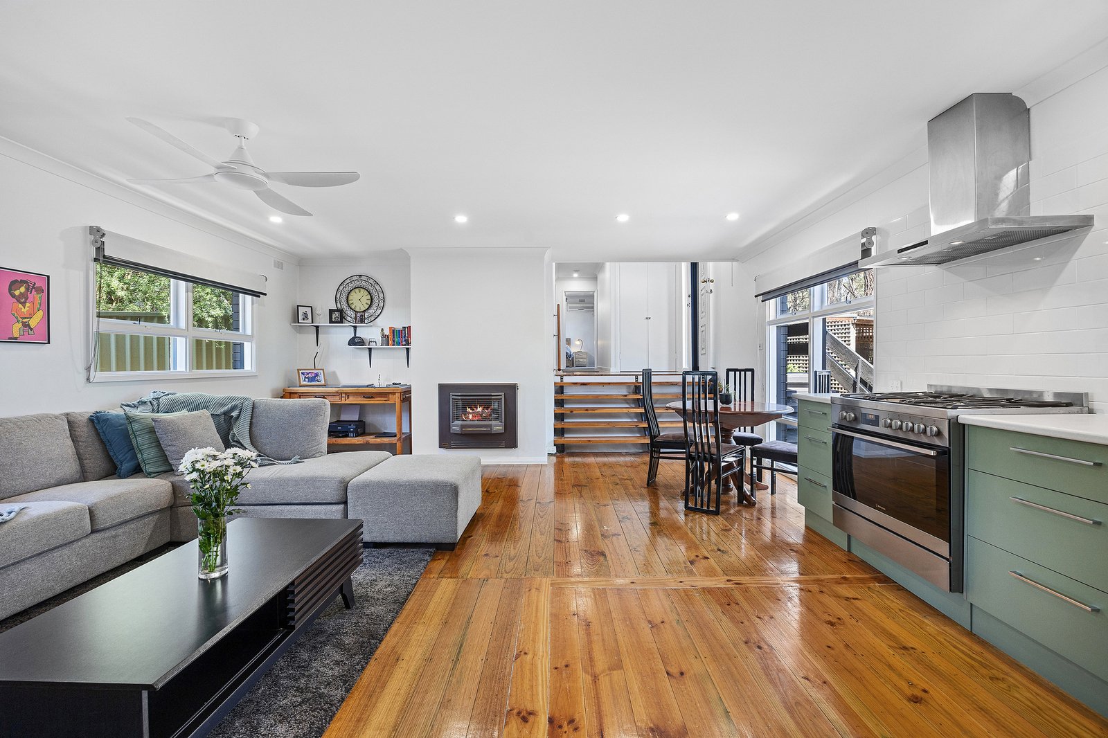 • Stunning timber flooring enhancing the open plan living, dining and kitchen zone