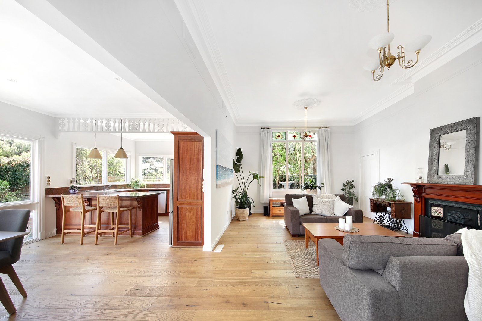 Following a beautifully proportioned traditional floorplan with a wing of over-sized robe-fitted bedrooms (with beautiful decorative fireplaces), this breathtaking three bedroom home transitions gently to today's living with two free-flowing zones providing space to lounge, dine and entertain, before flowing further to north-west decking and a lush oasis beyond.