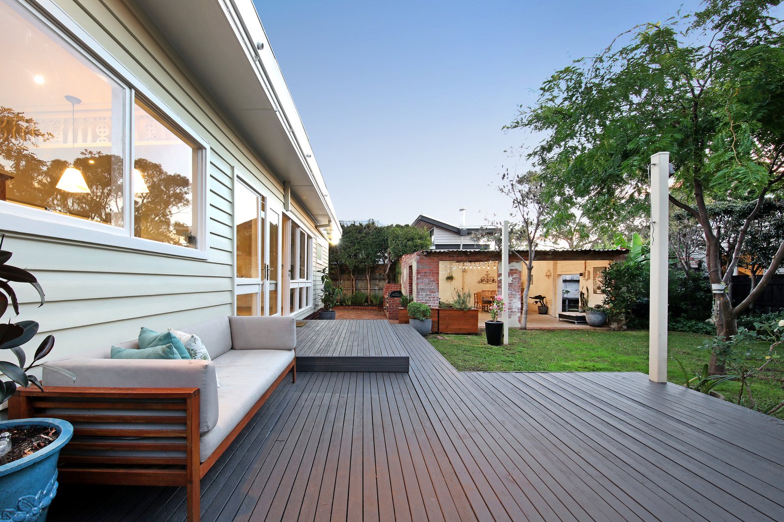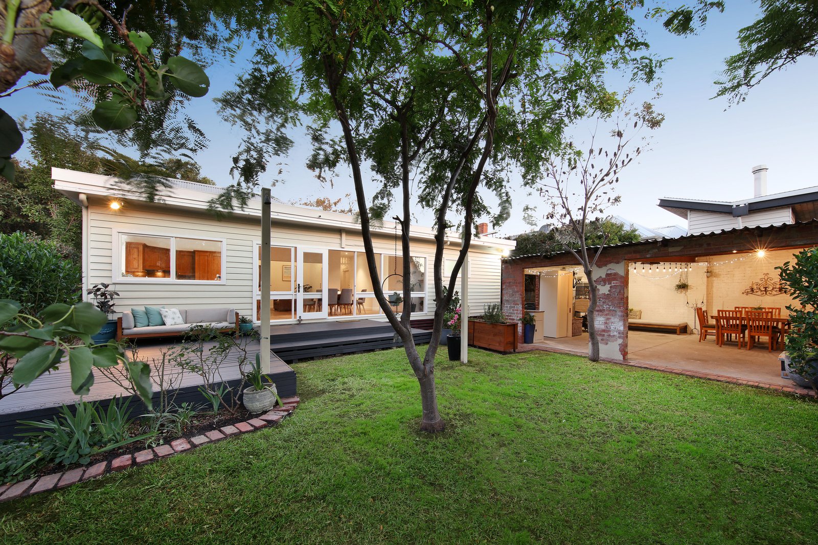 Nestled in beautifully landscaped surrounds with a sun-catching deck extending into a creative landscape of curvaceous beds and pleached hedges, there’s endless all-season entertaining in a whimsical brick al fresco pavilion...and easy access and future flexibility with crossovers on each frontage.