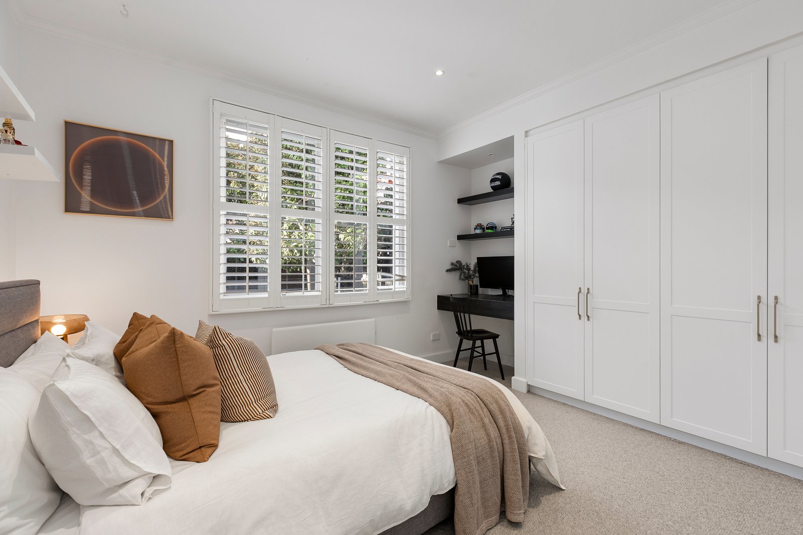 Cleverly accommodating with a choice of suites upstairs and down, the home offers perfect parental privacy in a plush first-floor master-level, while accommodating adult children, in-laws or fortunate guests in a ground-floor second suite ...and giving children their own wing with a deluxe dual-vanity bathroom. Luxe-styled with ample storage and designer fully-tiled bathrooms (most with a freestanding baths), this beautifully detailed home features custom-cabinetry (including a walk-in robe for each suite plus built-in desks) and a bay-window boudoir dressing-room upstairs.