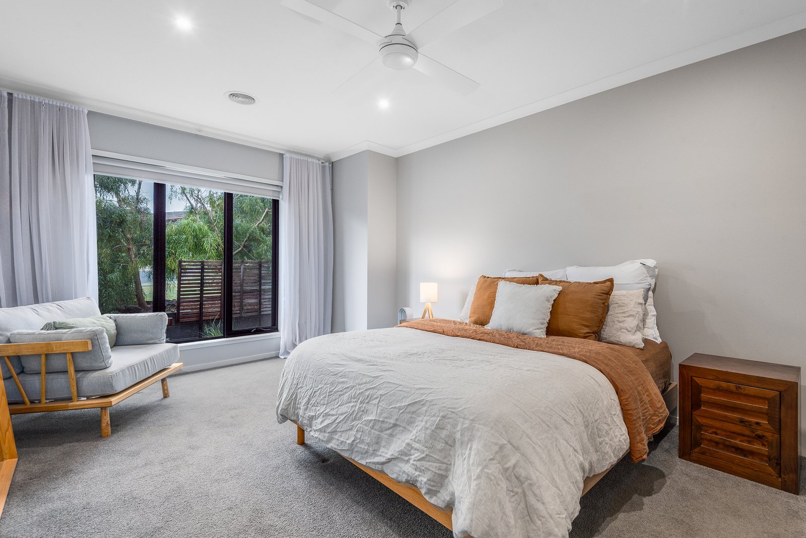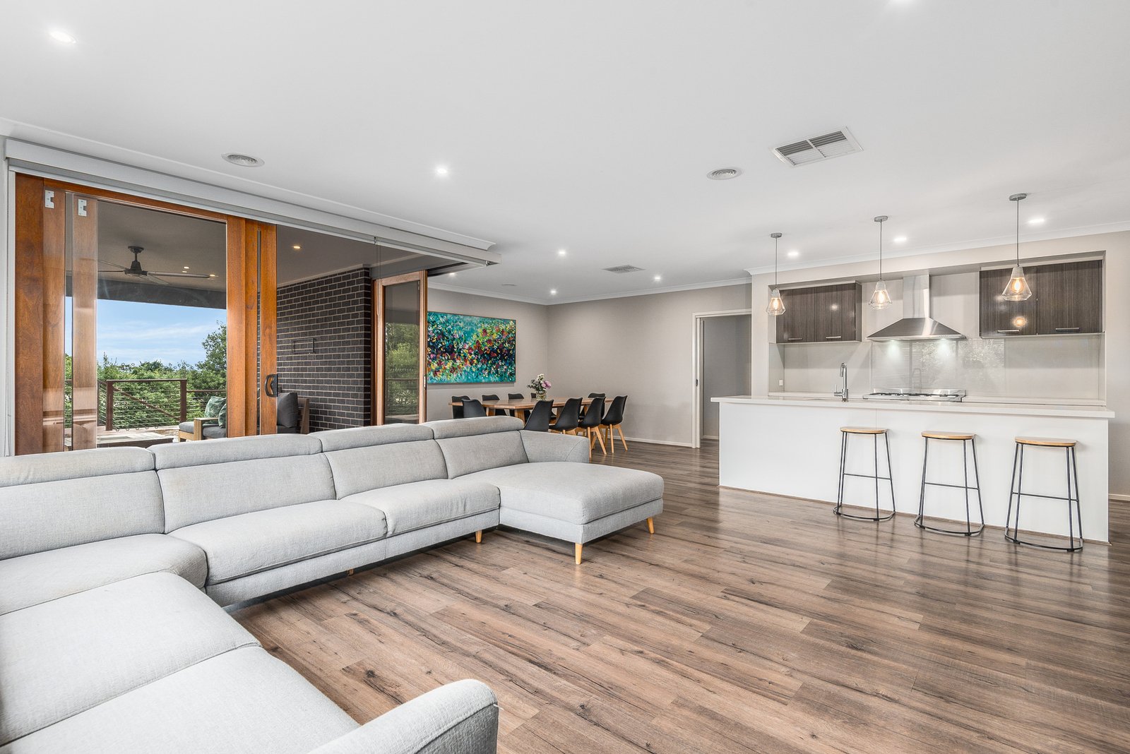 Outside, the expansive deck offers ample space for dining and lounging zones, with options to enjoy the sun or shade while taking in picturesque views across Grovedale, Waurn Ponds and Highton. The tiered backyard provides plenty of room for the kids to run around, with established trees bordering the property to create a private and tranquil environment.