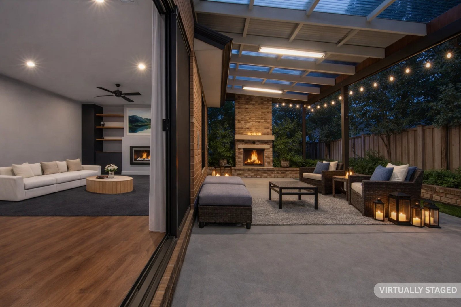 Step outside to a low- maintenance backyard, perfect for relaxing or entertaining, with an undercover alfresco area ideal for hosting family and friends, complete with space to gather around the open fire.