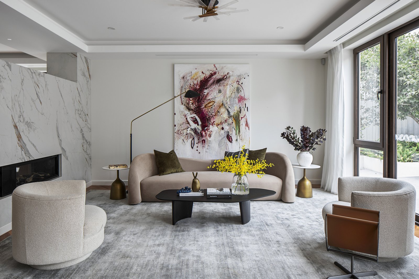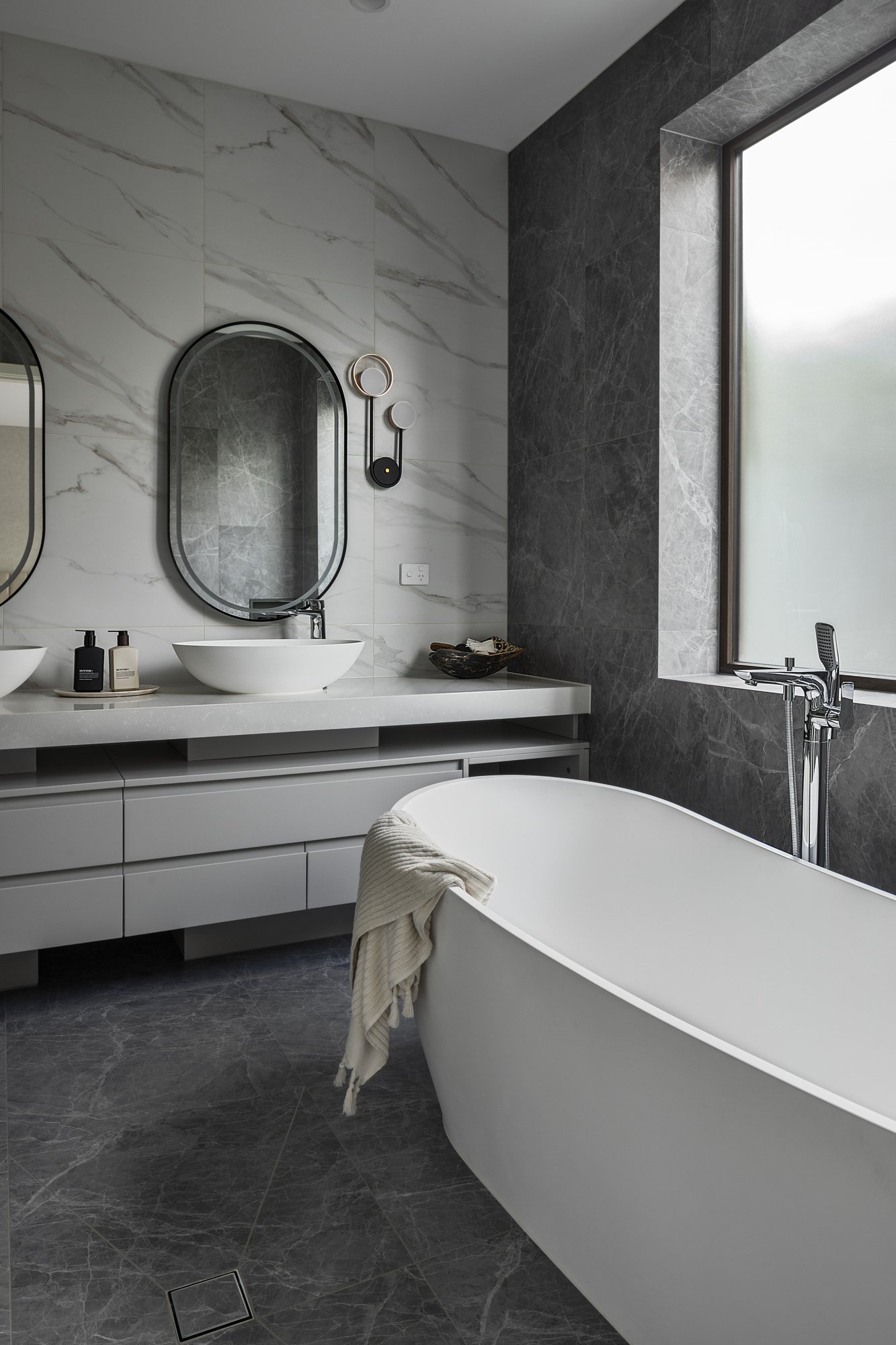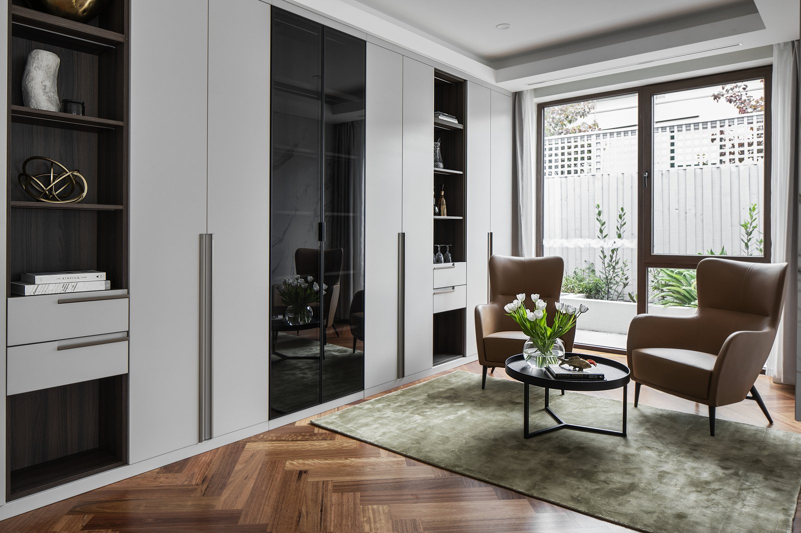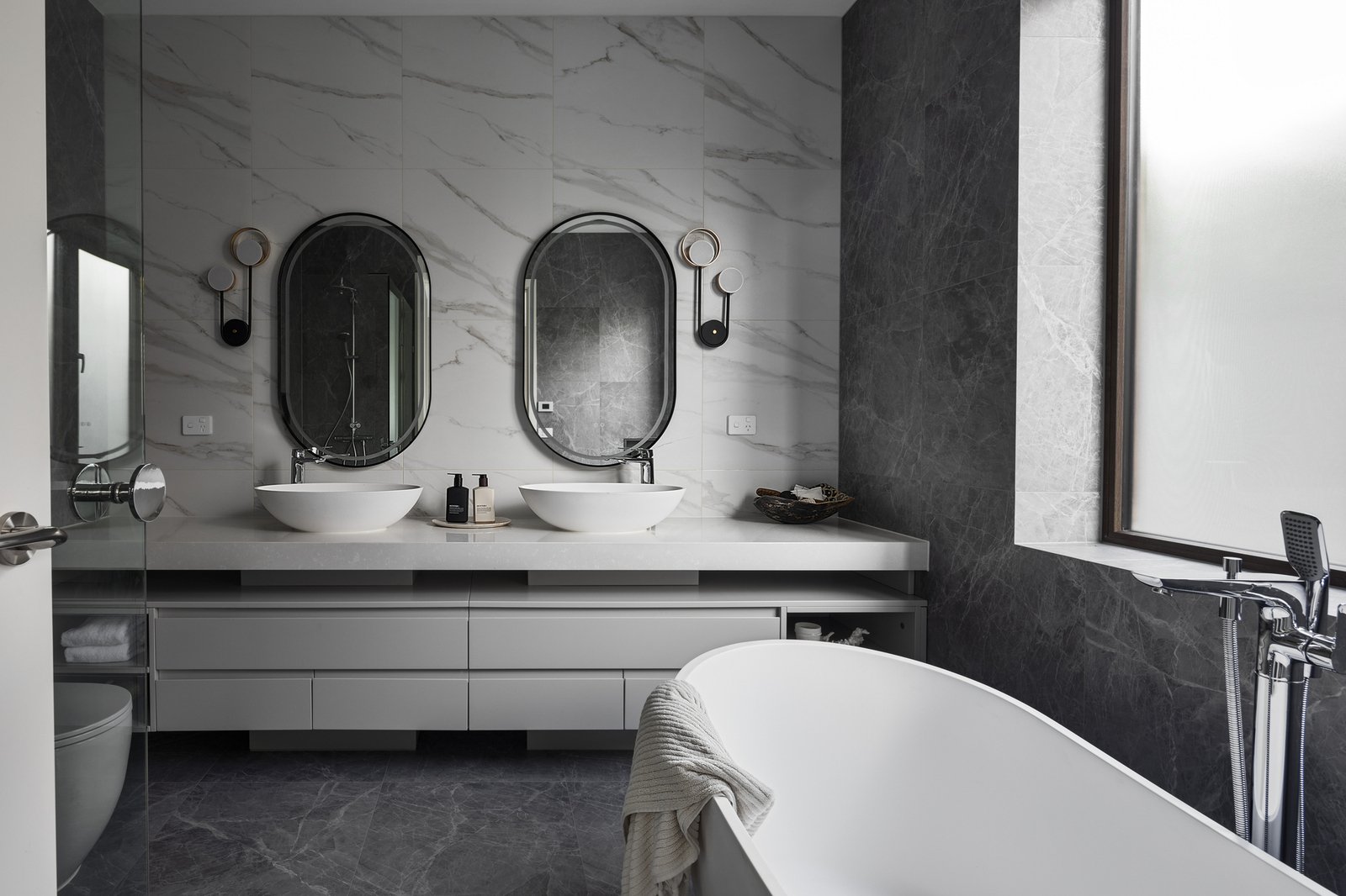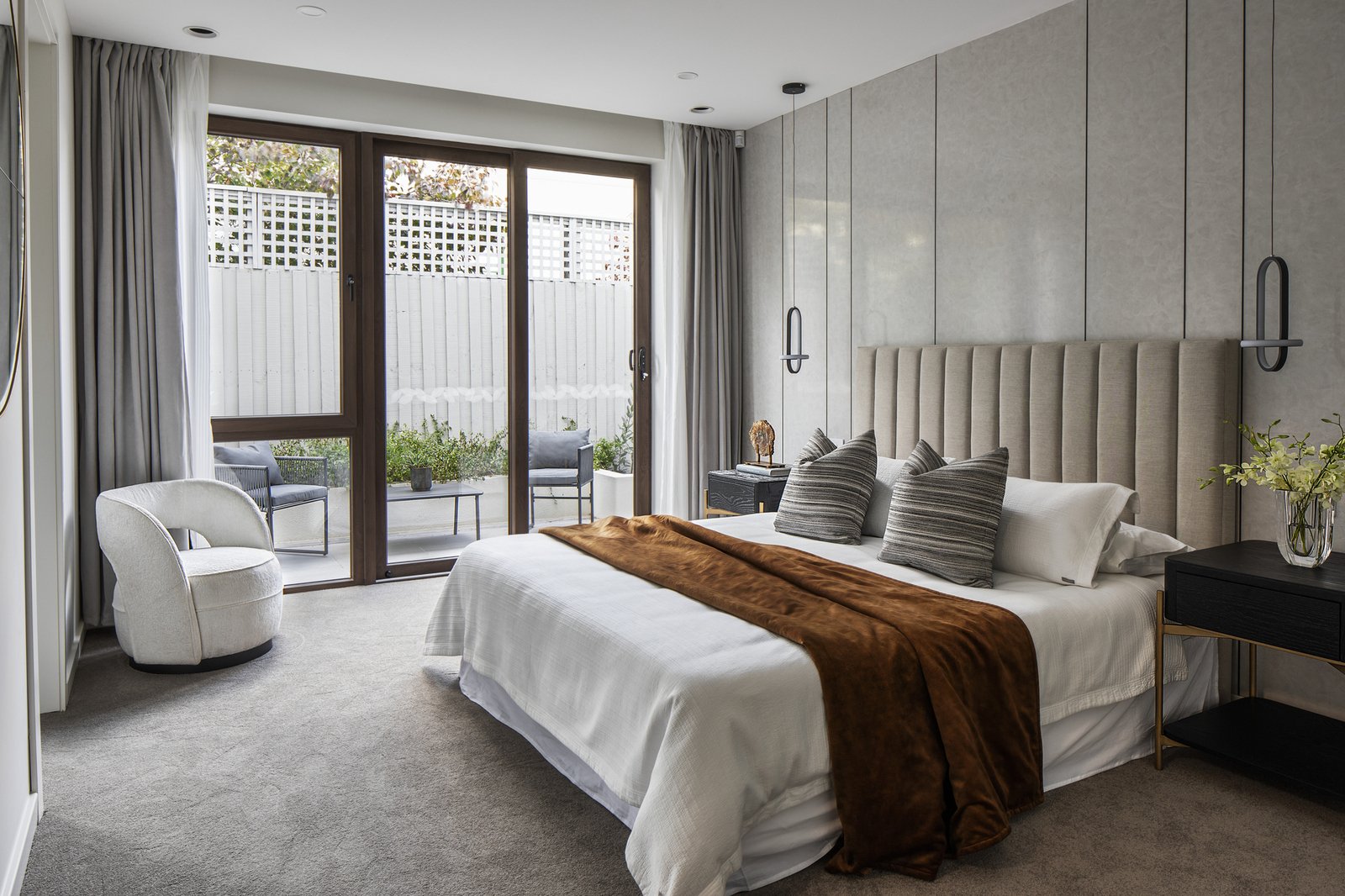 Two lavish bedroom suites each open to their own terrace area and feature walk-in robes and opulent ensuites with underfloor heating and freestanding baths, including a dual-vanity main. A versatile third bedroom with walk-in robe is currently appointed as a bespoke study, while the laundry and powder room reflect the same uncompromising level of finish.