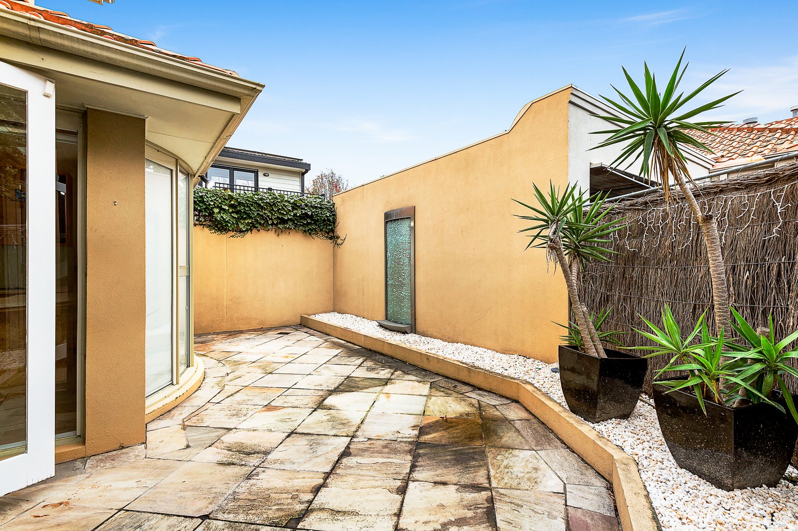 Distinctively detailed & wonderfully well-located, this 3 bedroom plus home-office, 2.5 bathroom town residence offers a sophisticated approach to life in central Brighton. Just off Bay St, a minute to Church St & a walk to the Golden Mile beachfront, this home designed by architect James Rigney showcases a dual living design graced with a gasfire-warmed lounge, a stone-floored casual zone with high-impact stone & Gaggenau kitchen curving into a semi-circular glass dining bay, & a sumptuous master-suite with marble-detailed dual vanity en-suite & WIR. Fronted by double garaging, backed by a courtyard & appointed with every prestige extra, this is the place for a glamorous life. Features: updated main bathroom, Gaggenau kitchen reverse cycle ducted air-con, intercom & alarm. Coveted New St/Bay St precinct location.