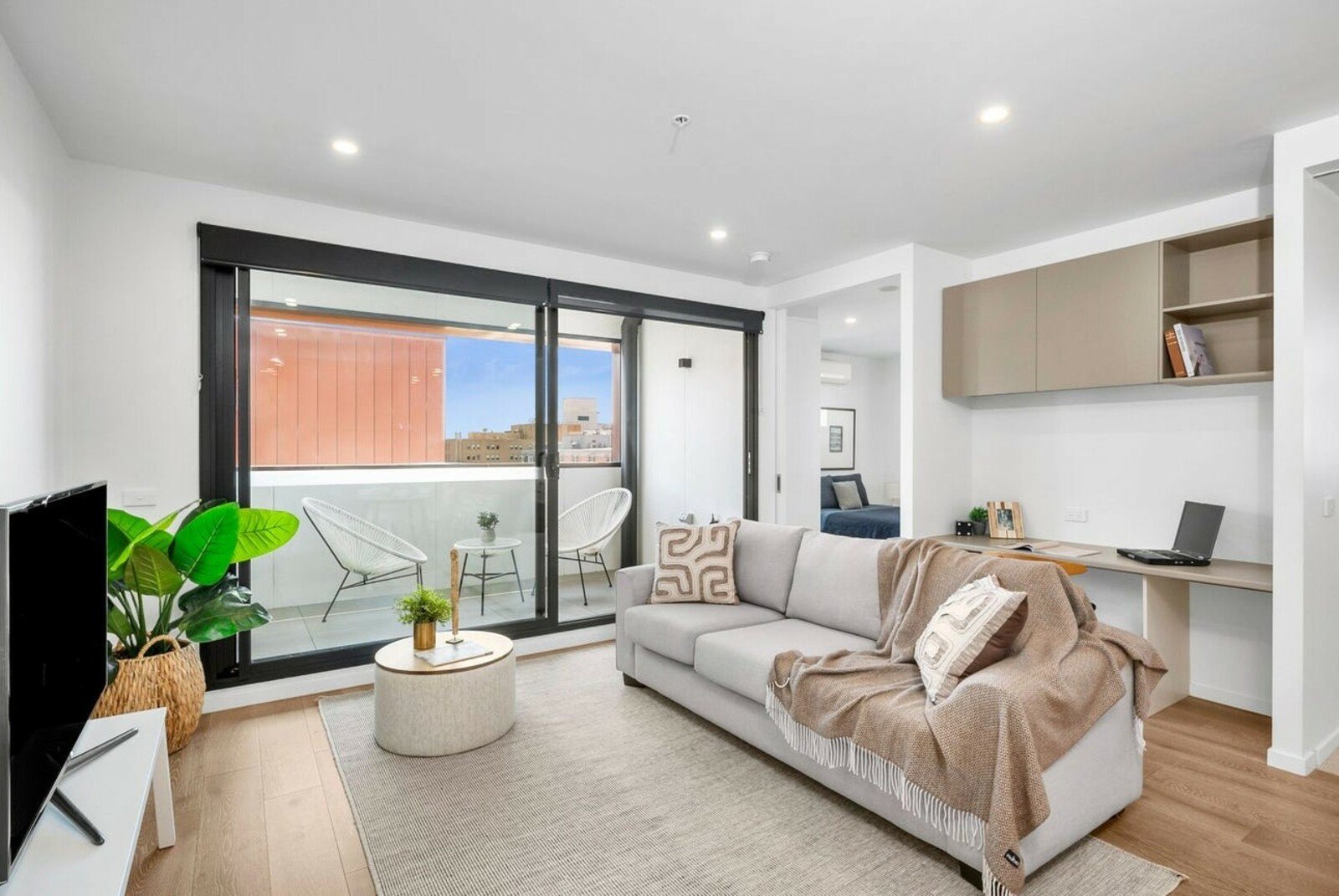 On entry to the apartment, the north facing sun-filled open plan living with warm neutral accents create an inviting ambience throughout. The quality kitchen is presented in elegant finishes, the island bench featuring waterfall stone benchtops, quality appliances include Bosch 600mm oven, Westinghouse integrated fridge/freezer, gas cooktop and dishwasher, with classic subway tile splashback and excellent storage provisions. An easy flow through to the dining, living and out to the balcony provides the perfect layout for everyday living and effortless entertaining. A well-appointed study nook offers a functional space to work from home. East facing windows filter beautiful morning light throughout both bedrooms. The main bedroom includes built-in robes and a luxurious ensuite finished in floor to ceiling tiles with walk-in frameless shower and modern fittings. Bedroom two is also fitted with robes and serviced by a separate bathroom which continues in the high quality theme, incorporating a European laundry. Secure access and an allocated parking space provide for convenient and secure entry to the complex.