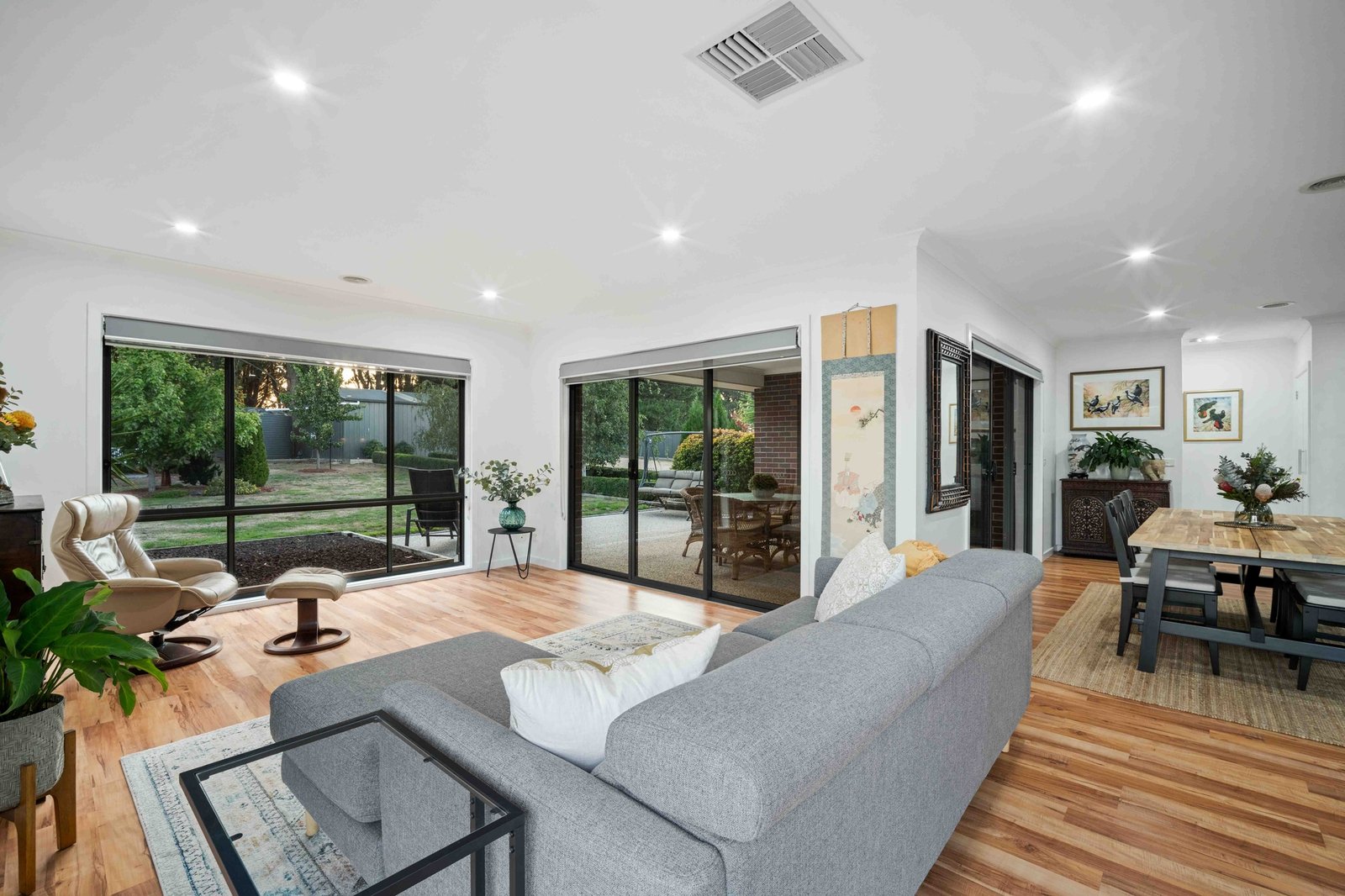 Immaculate from front to back, this stunning home showcases quality and comfort throughout. Designed with family living in mind, the home features two spacious living zones including a dedicated theatre or rumpus room, alongside a light-filled open plan kitchen, meals and living area. The well-appointed kitchen is both stylish and functional, complete with a 900mm electric oven and gas cooktop, dishwasher and a practical corner pantry, all flowing seamlessly into the heart of the home. Year-round comfort is assured with gas central heating and evaporative cooling, while updated carpets and blinds add a fresh, modern touch.