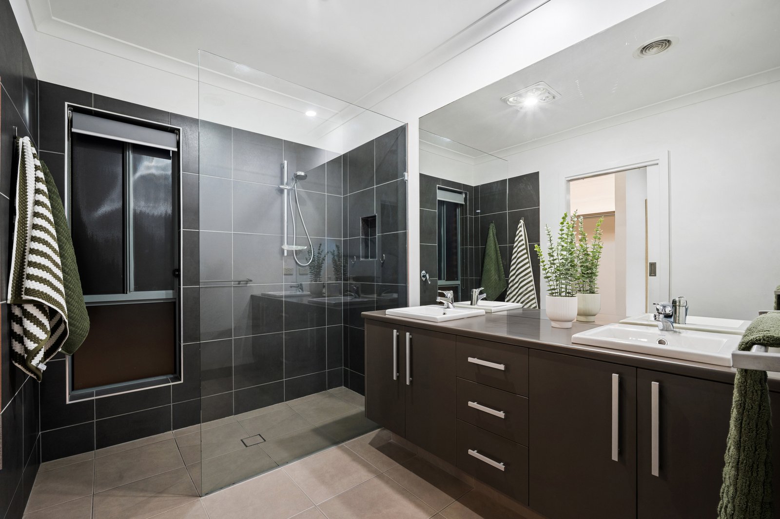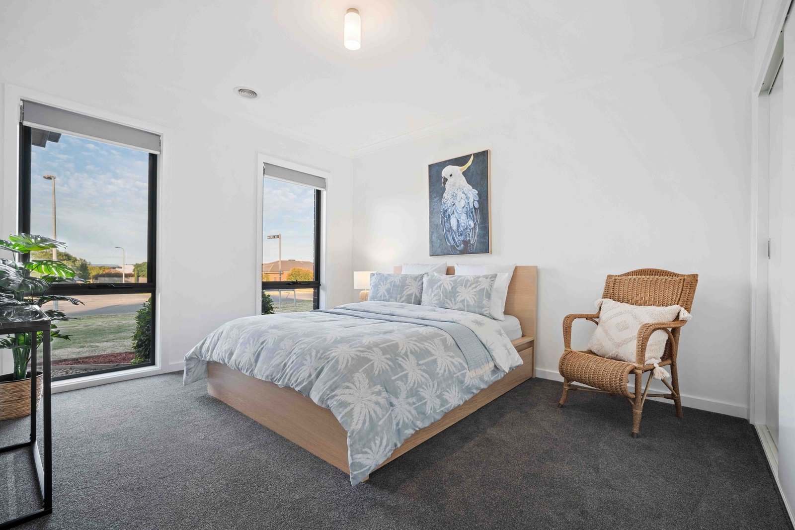 Accommodation is generous, offering three bedrooms plus a study. The king-sized master suite is privately positioned at the rear of the home and opens directly onto the alfresco area, creating a peaceful retreat. It features two separate walk-in robes and a luxurious ensuite with double vanity and double shower. The remaining bedrooms are well-sized and serviced by a central bathroom, ideal for growing families.