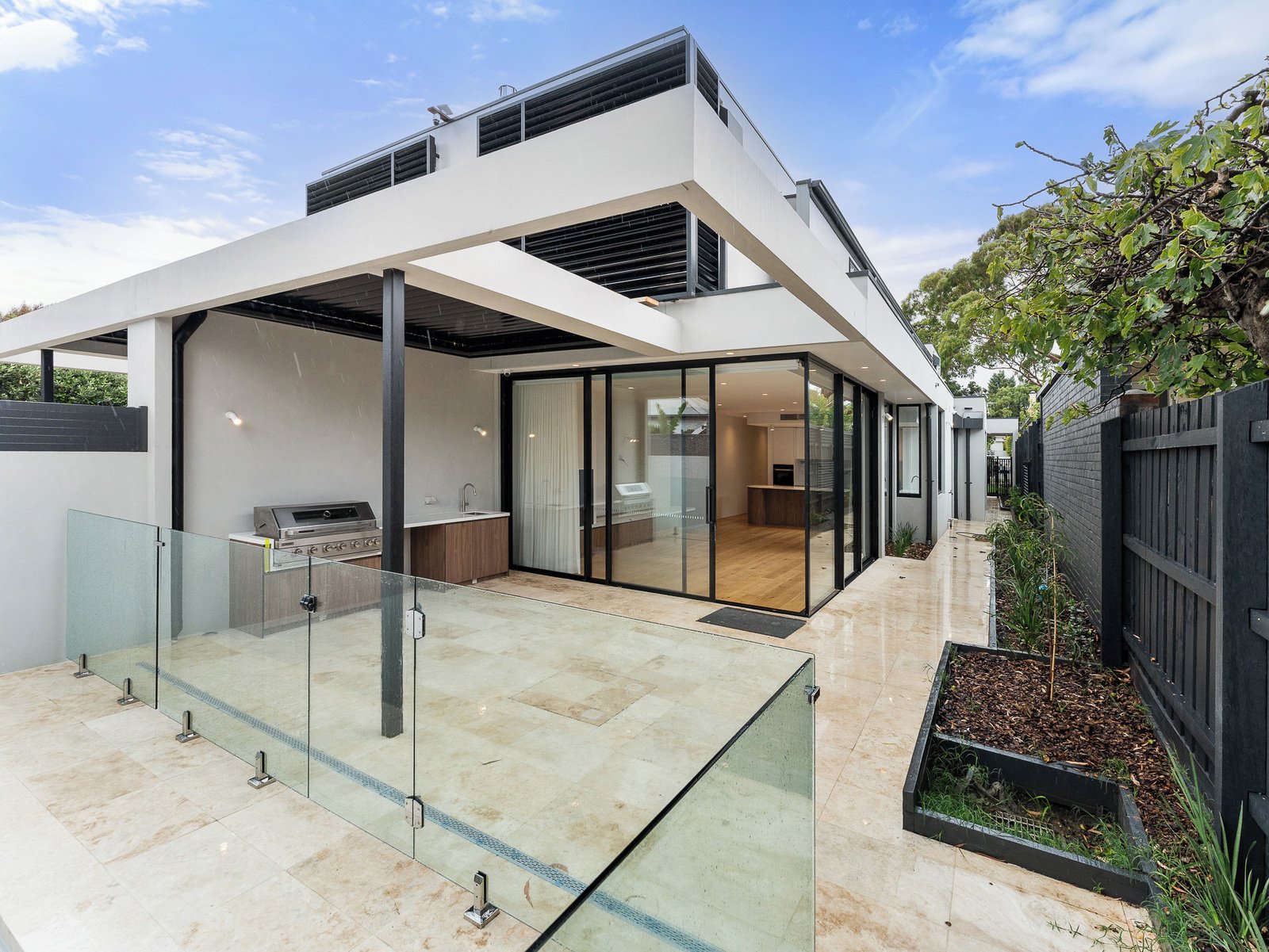 With its clean, modern façade, large windows, and thoughtfully landscaped surroundings, this property delivers both street appeal and functional living.