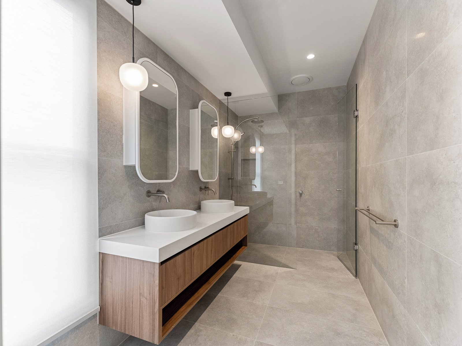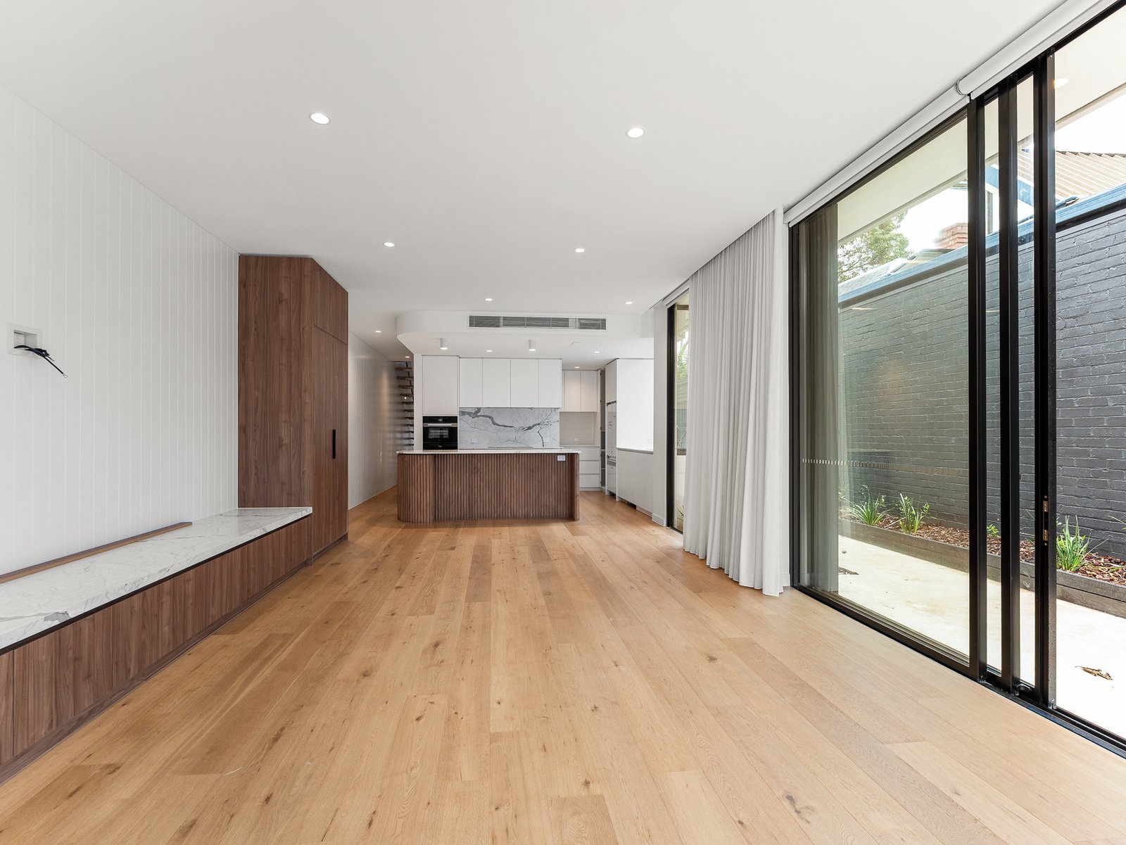 At the heart of the home is a designer kitchen equipped with elegant stone benchtops, electric cooking, and premium integrated appliances, including a fridge and dishwasher for a seamless modern finish. A generous butler’s pantry adds extra storage and preparation space, making entertaining effortless.