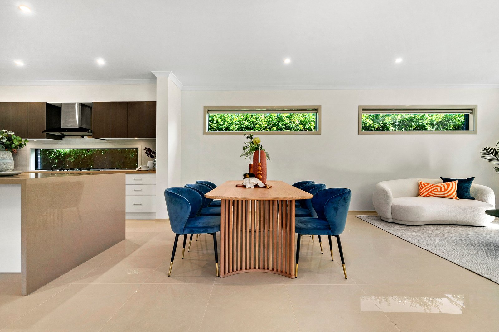 The grand entertainer is north facing, modern, expansive and designed for seamless indoor-outdoor integration – distinguished by two huge outdoor living rooms and a viewing balcony that lets you appreciate the stunning panorama of The Dandenong Ranges.