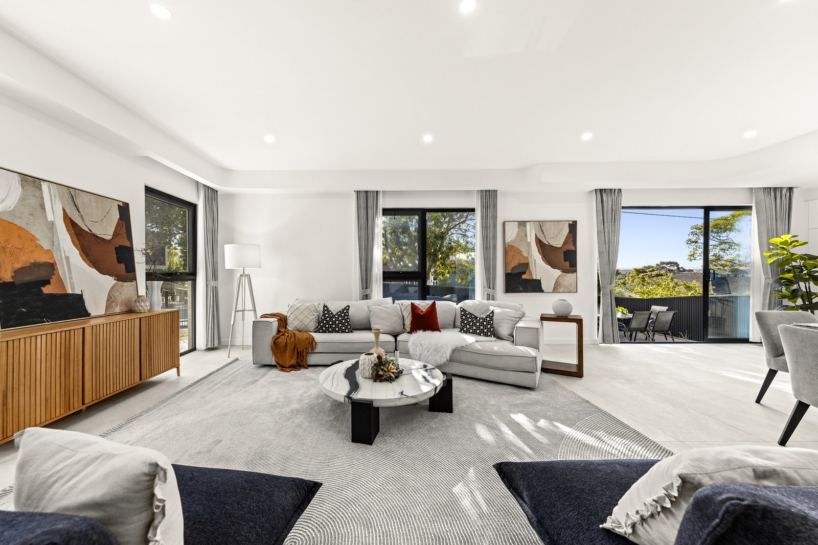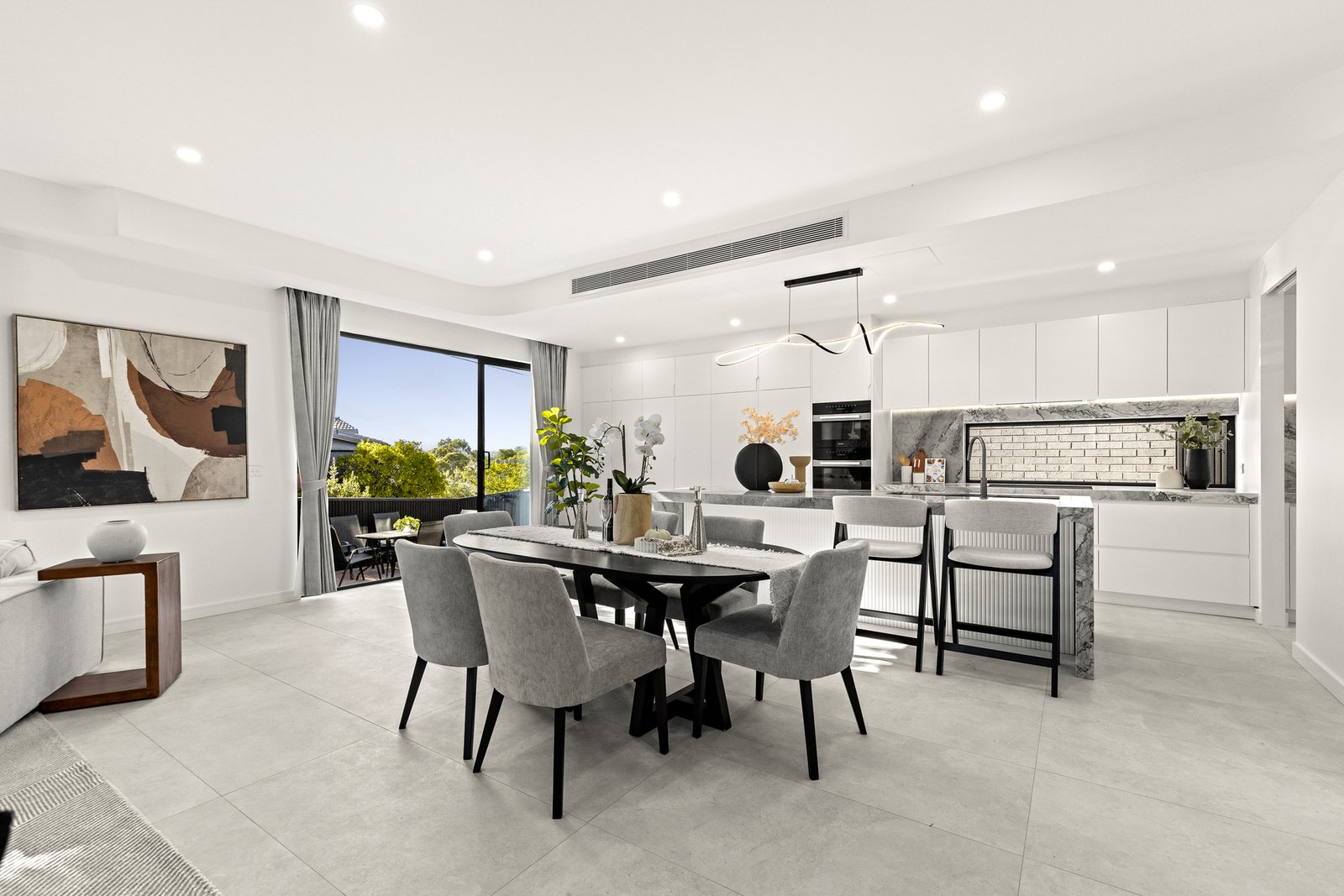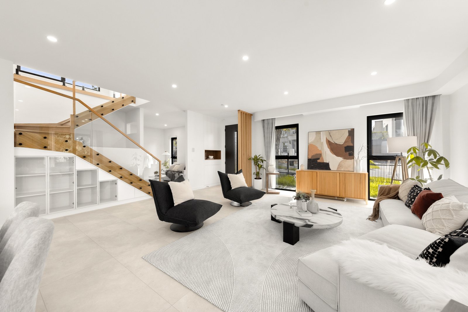 Lavished with designer finishes such as bathrooms with floor-to-ceiling tiles, multi-function halo showers, touch screen mirrors, smart toilets and stone topped vanities, full-height bedroom doors, zoned ducted heating/air conditioning, double glazing, high ceilings, alarm, CCTV cameras, keyless entry, video intercom, water tank plus a double garage with internal access and remote gated driveway.