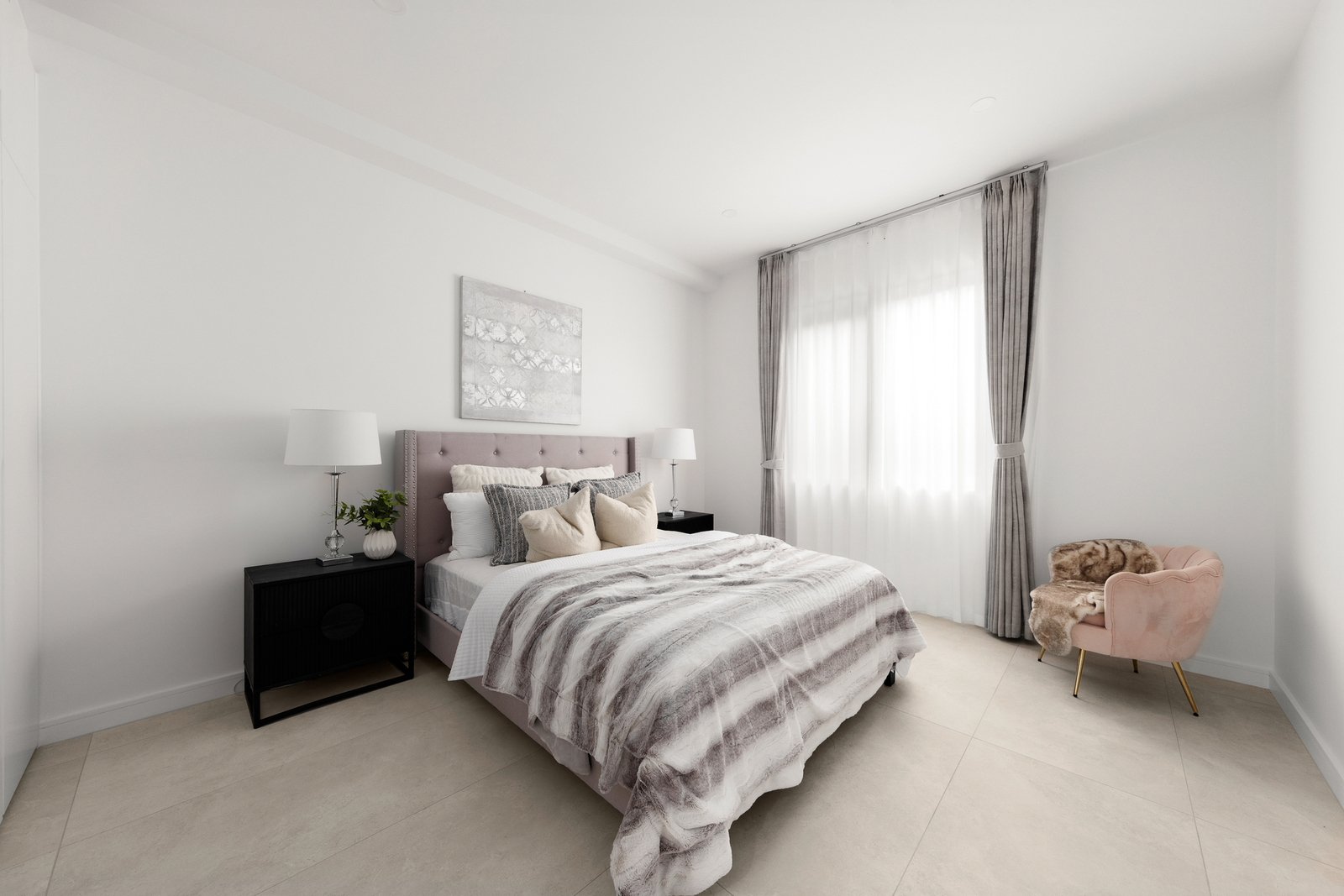 Rising up beyond its enclosed front yard, the home’s glamour packed interior unfolds to reveal premium floor tiles that glide through to an indulgent lounge and dining room that’s filled with natural light and lavished with high ceilings.