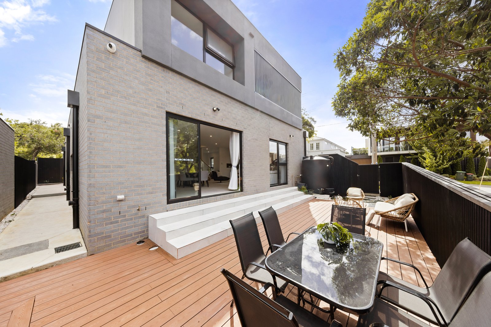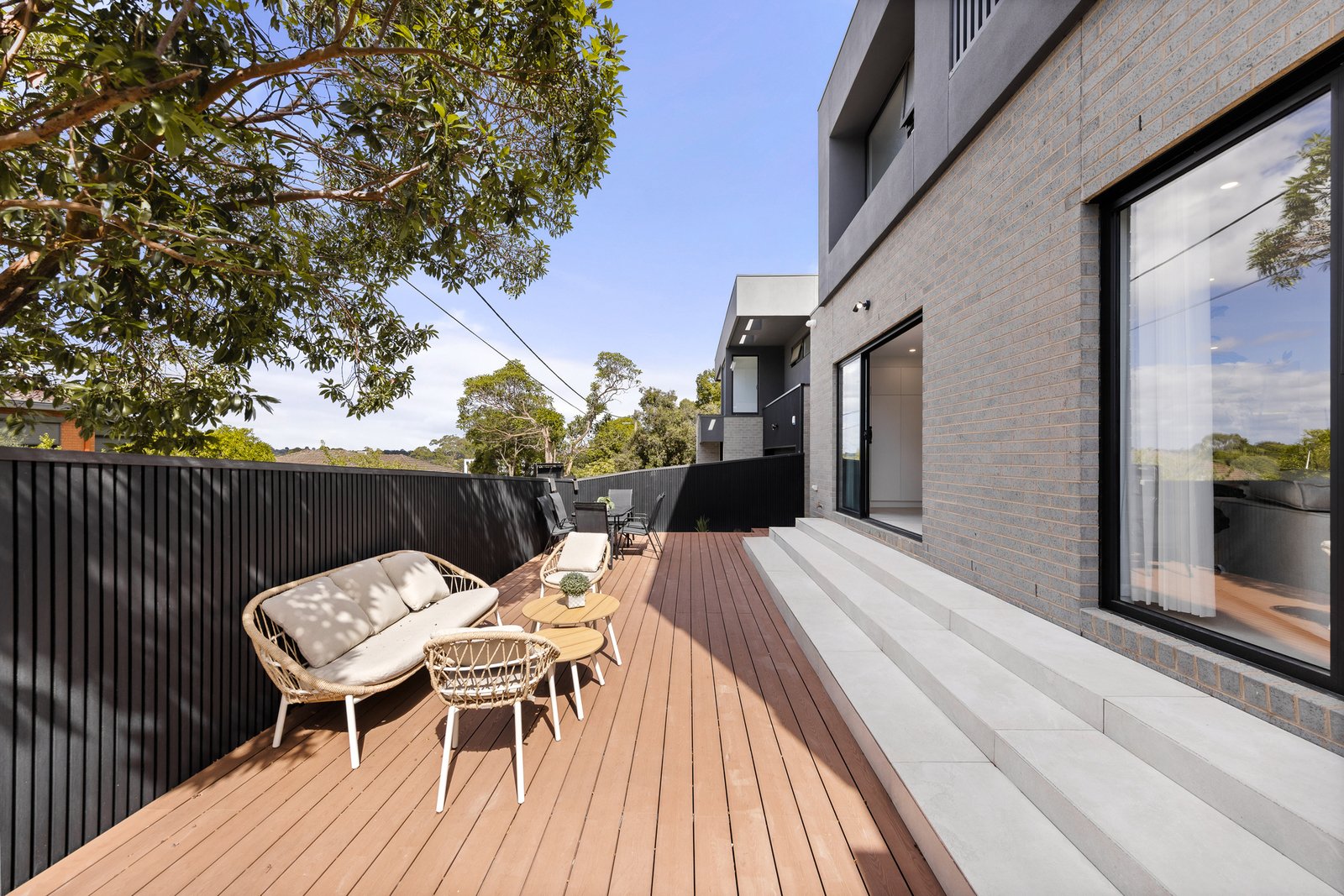 Achieving the perfect connection between inside and out, stacker doors open onto a large mod-wood entertaining deck and private courtyard where you can enjoy views out into the distance while you gather with friends.