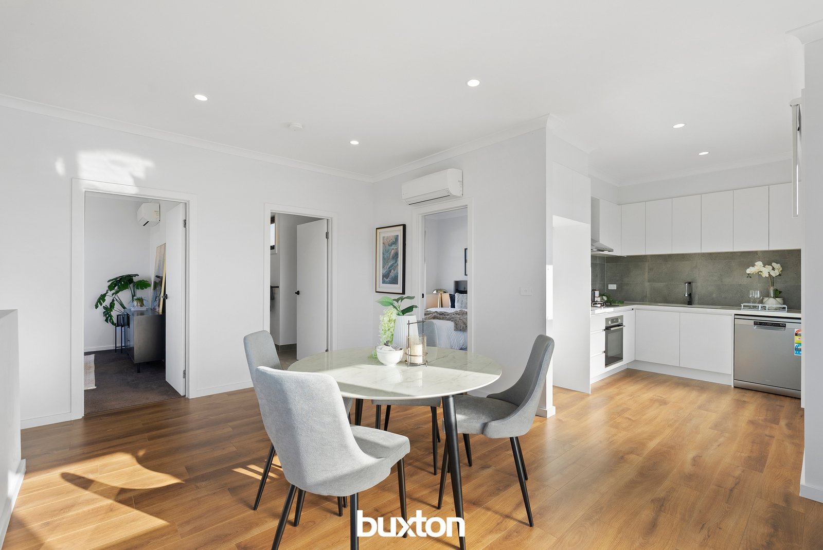Further enhancing the home are laminate timber flooring through the living zones, plush carpet to bedrooms, a porcelain tiled bathroom, LED downlights and split system heating and cooling to all bedrooms and the main living area.