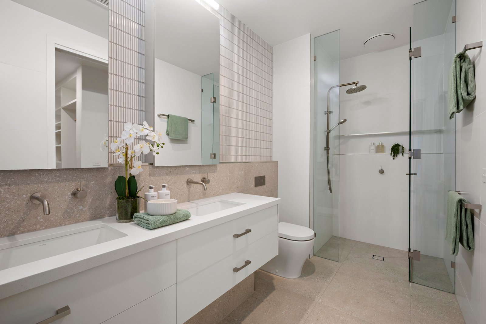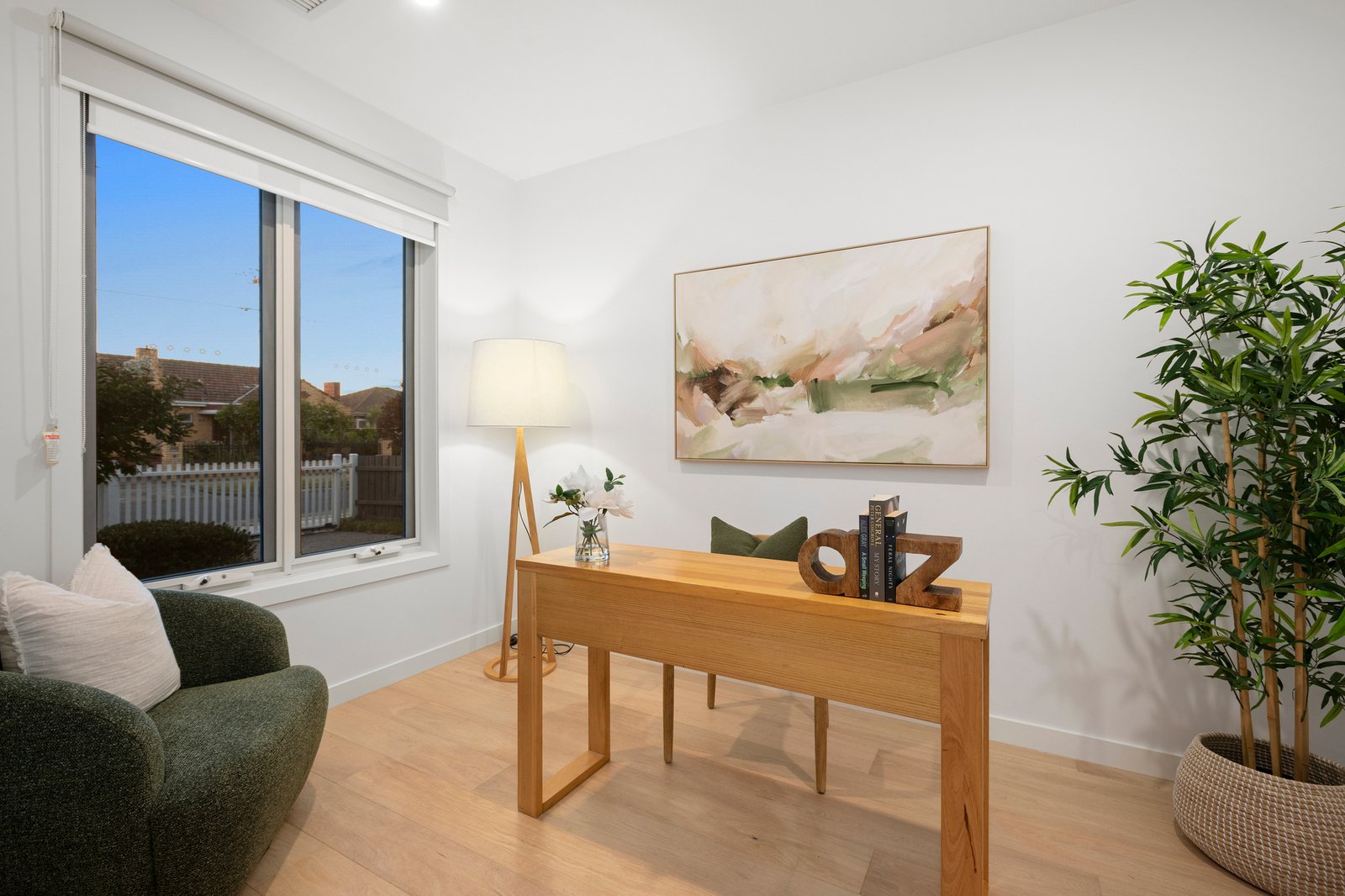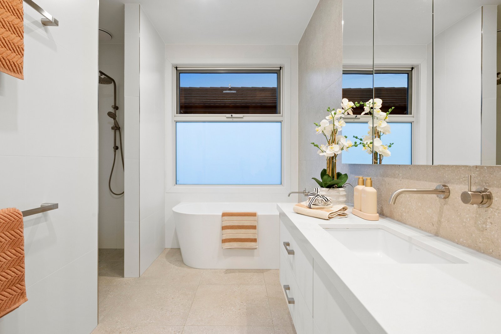Finely detailed with Kit Kat feature tiles and brushed-steel finishes for each bathroom (one a deluxe dual-vanity ensuite, the other a sizeable main with freestanding bath), this high-quality home is big on unique features including a mudroom-area with key-drop/charging station, a street-view work from home office and well-fitted robes including a main walk-behind dressing-area.