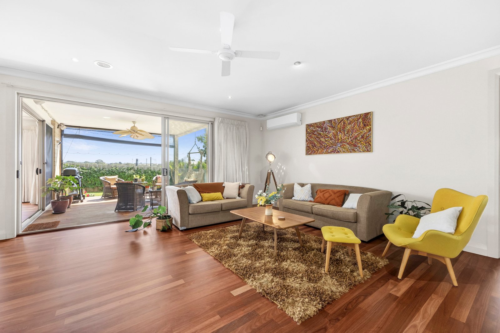 Zoned ducted heating, four split system heating and cooling units, and ceiling fans