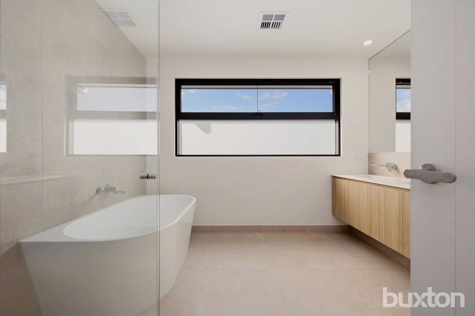 Upstairs, a second living retreat provides valuable additional space for relaxation or family living. The luxurious main master suite is a true sanctuary, featuring a walk-in robe and a beautifully appointed ensuite with twin vanities. Two further generously sized double bedrooms with built-in robes are serviced by a sophisticated central bathroom, highlighted by a striking freestanding bath that brings a touch of hotel-style indulgence.