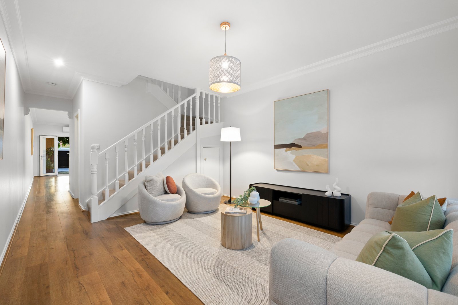 Upstairs, three well-proportioned bedrooms include built-in robes serviced by a beautifully renovated, naturally bright central bathroom. Downstairs, a fully updated laundry with an integrated powder room adds further practicality and convenience.
