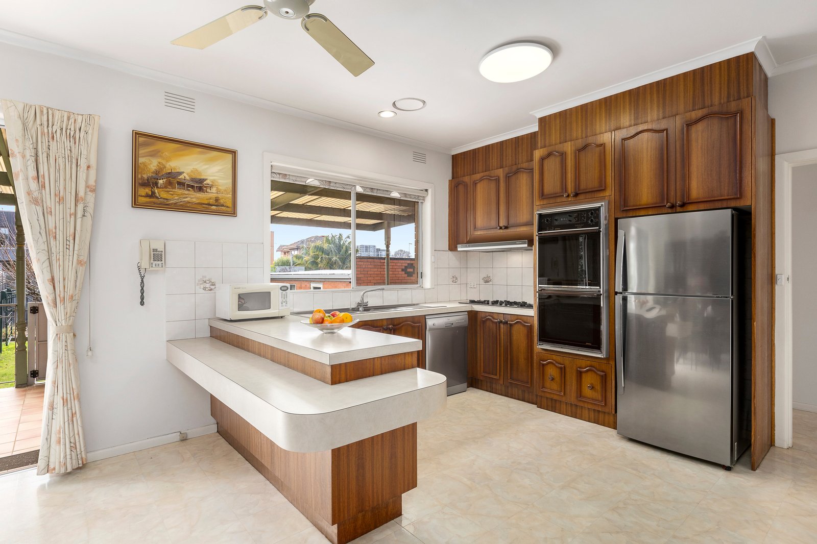 Beyond a sweeping terrazzo porch, original features and comfortable proportions create an inviting environment ready to be enjoyed immediately or rented out while you plan your next move. Elevated to capture natural light, the immaculate lounge features a slate fireplace (not operational) and decorative ceiling, flowing to the classic timber kitchen and spacious dining area. Outside, a covered terrace overlooks a sun-soaked backyard, ideal for family play and entertaining, complemented by a up-to four-car garage and workshop.