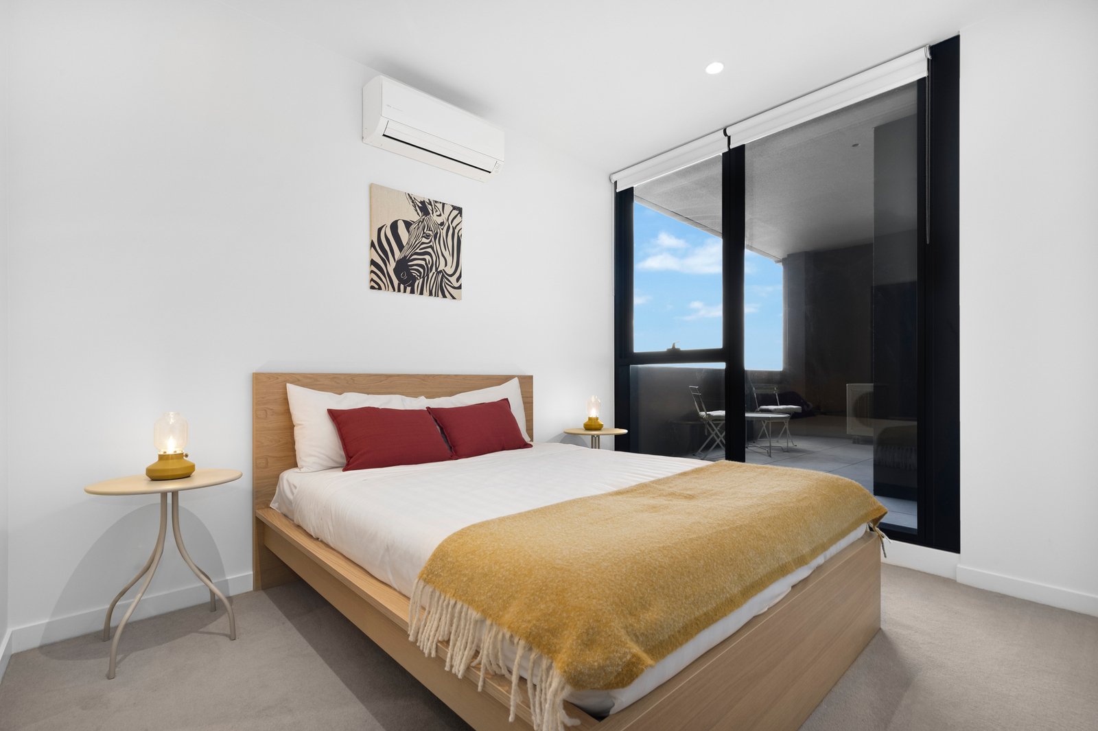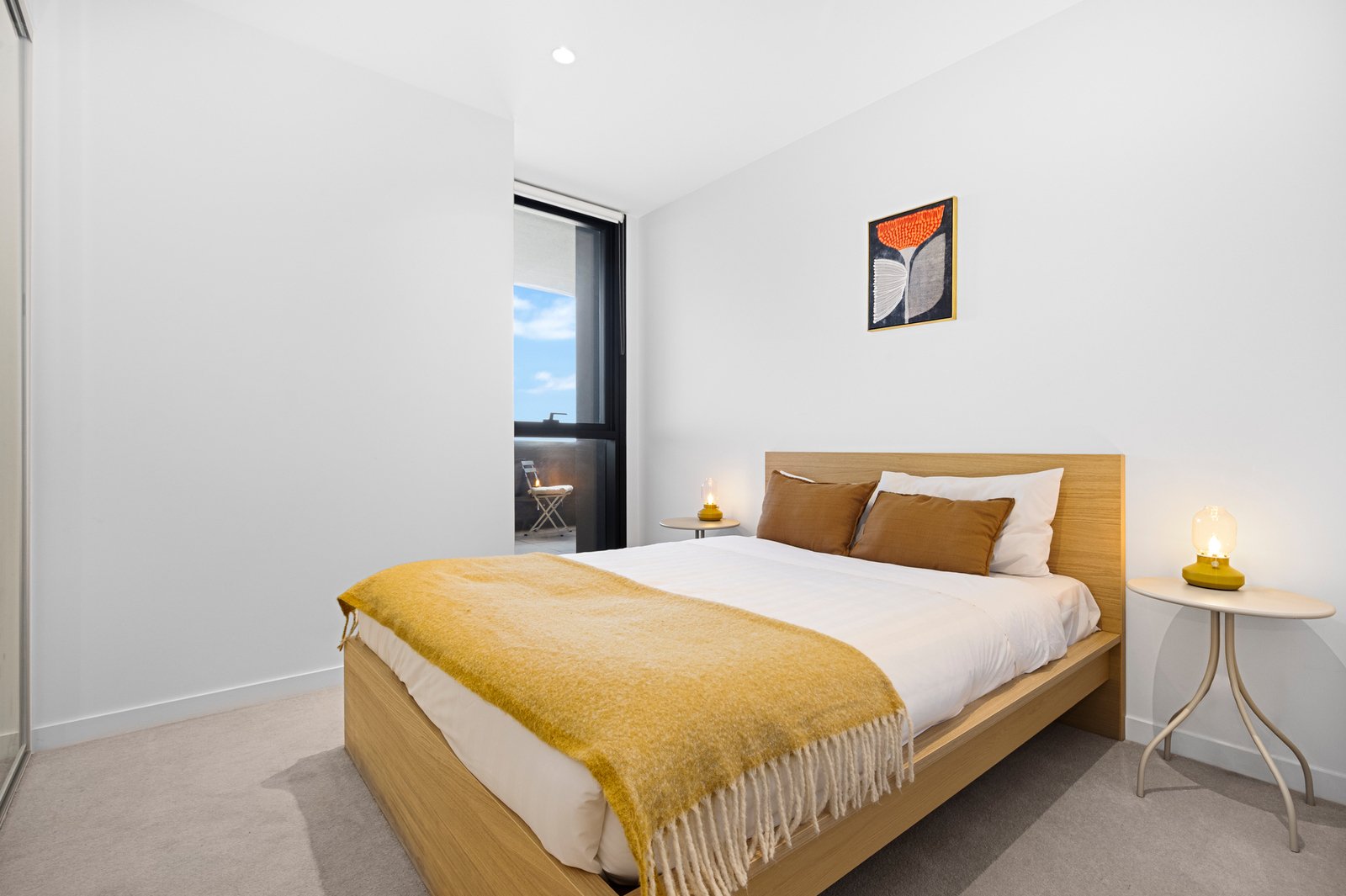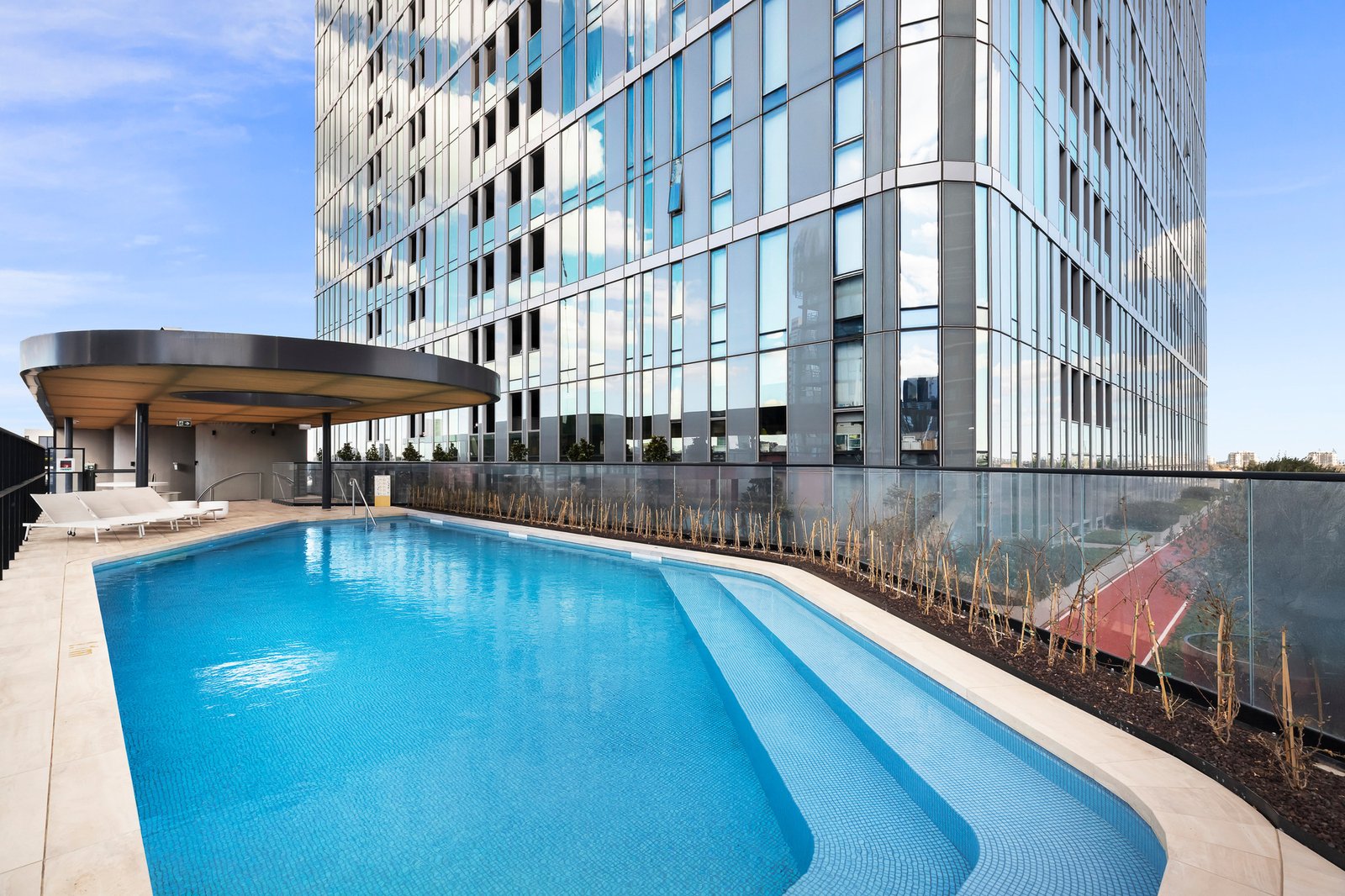 Designed to cater to the whims of young and old, this home is supported by the comprehensive amenities, including concierge service, an outdoor pool, running track, sauna, BBQ, kid’s playground, theatre room, and more. Coles is at the base of the building, with nearby 109 tram and 235 bus services, and easy access to South Melbourne Market, the Bay Street precinct, and DFO South Wharf.
