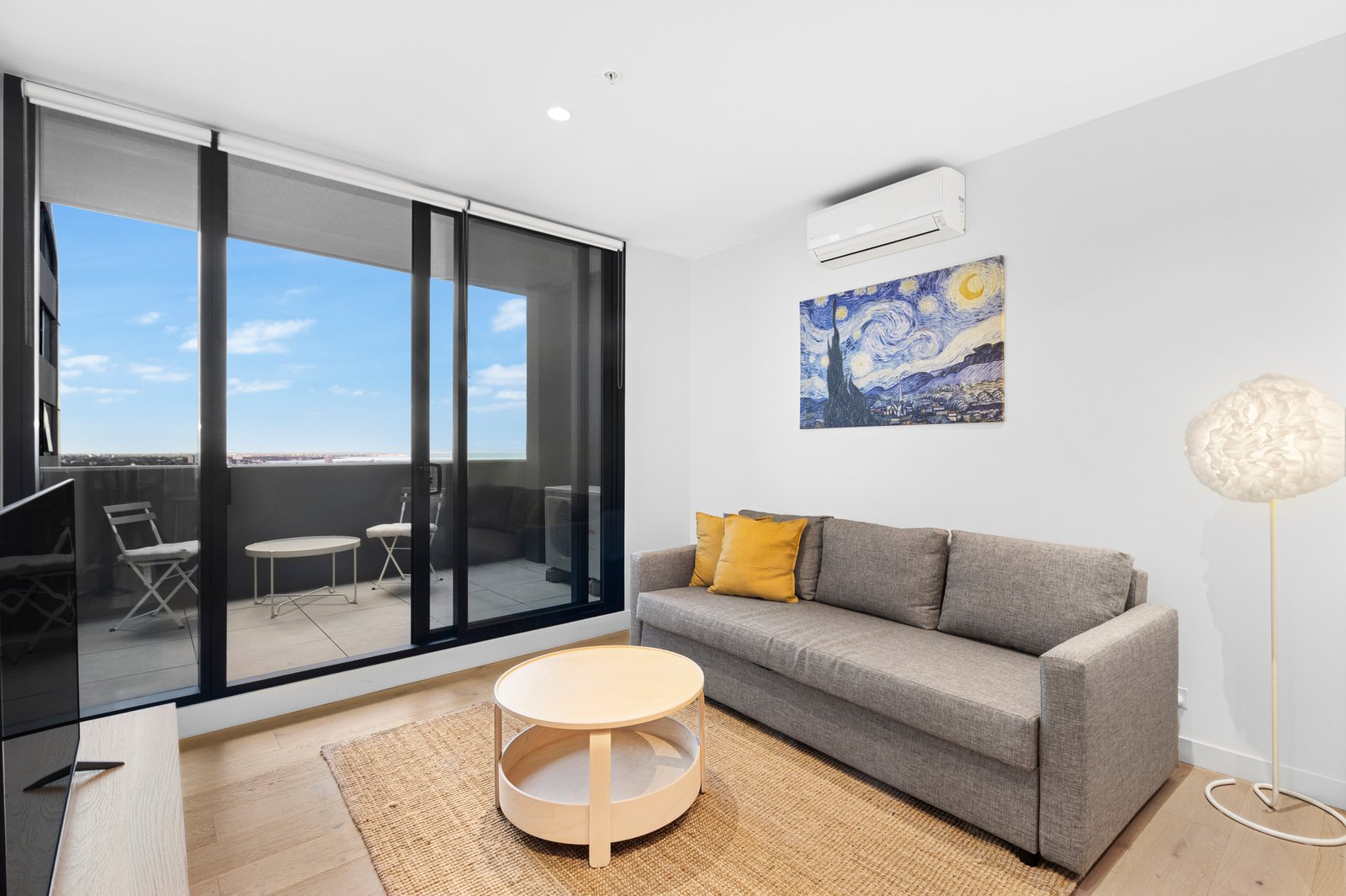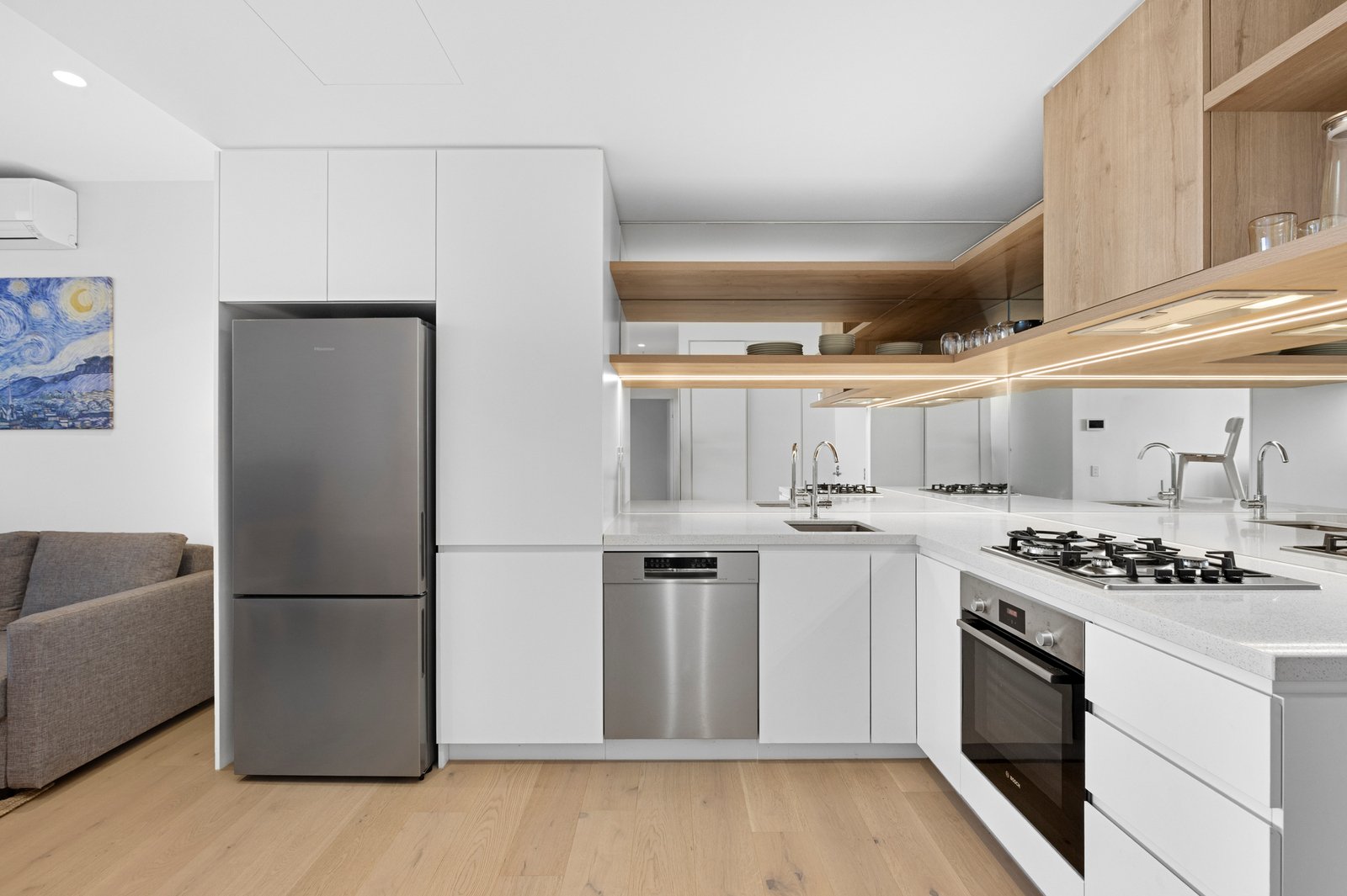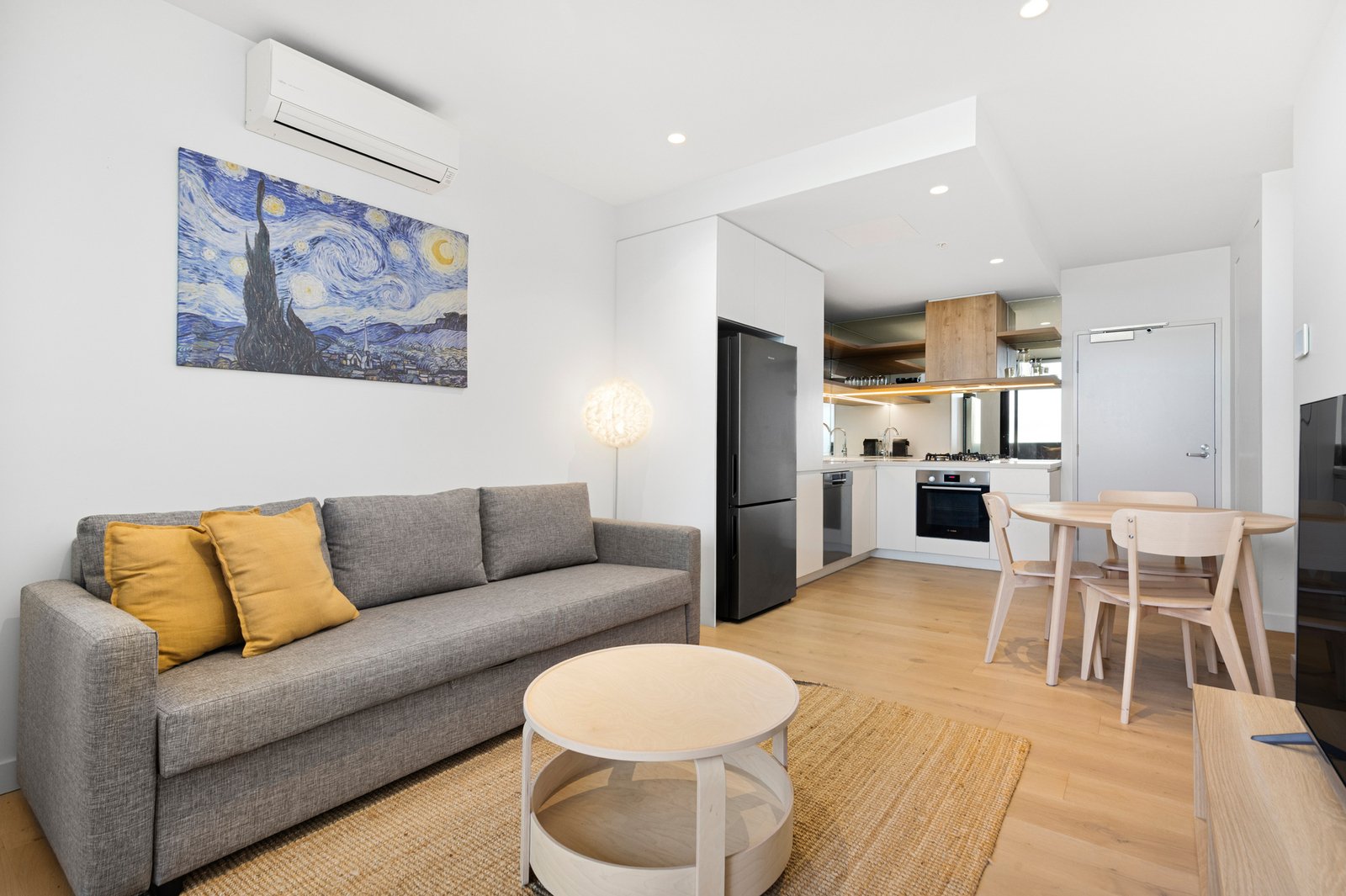 Designed to cater to the whims of young and old, this home is supported by the comprehensive amenities, including concierge service, an outdoor pool, running track, sauna, BBQ, kid’s playground, theatre room, and more. Coles is at the base of the building, with nearby 109 tram and 235 bus services, and easy access to South Melbourne Market, the Bay Street precinct, and DFO South Wharf.