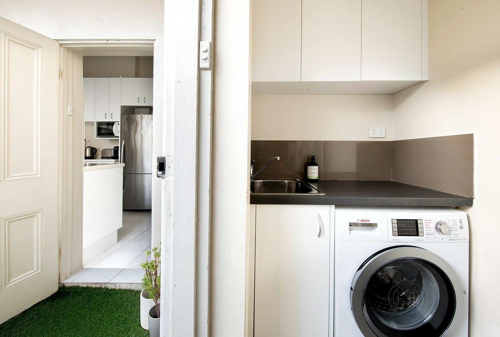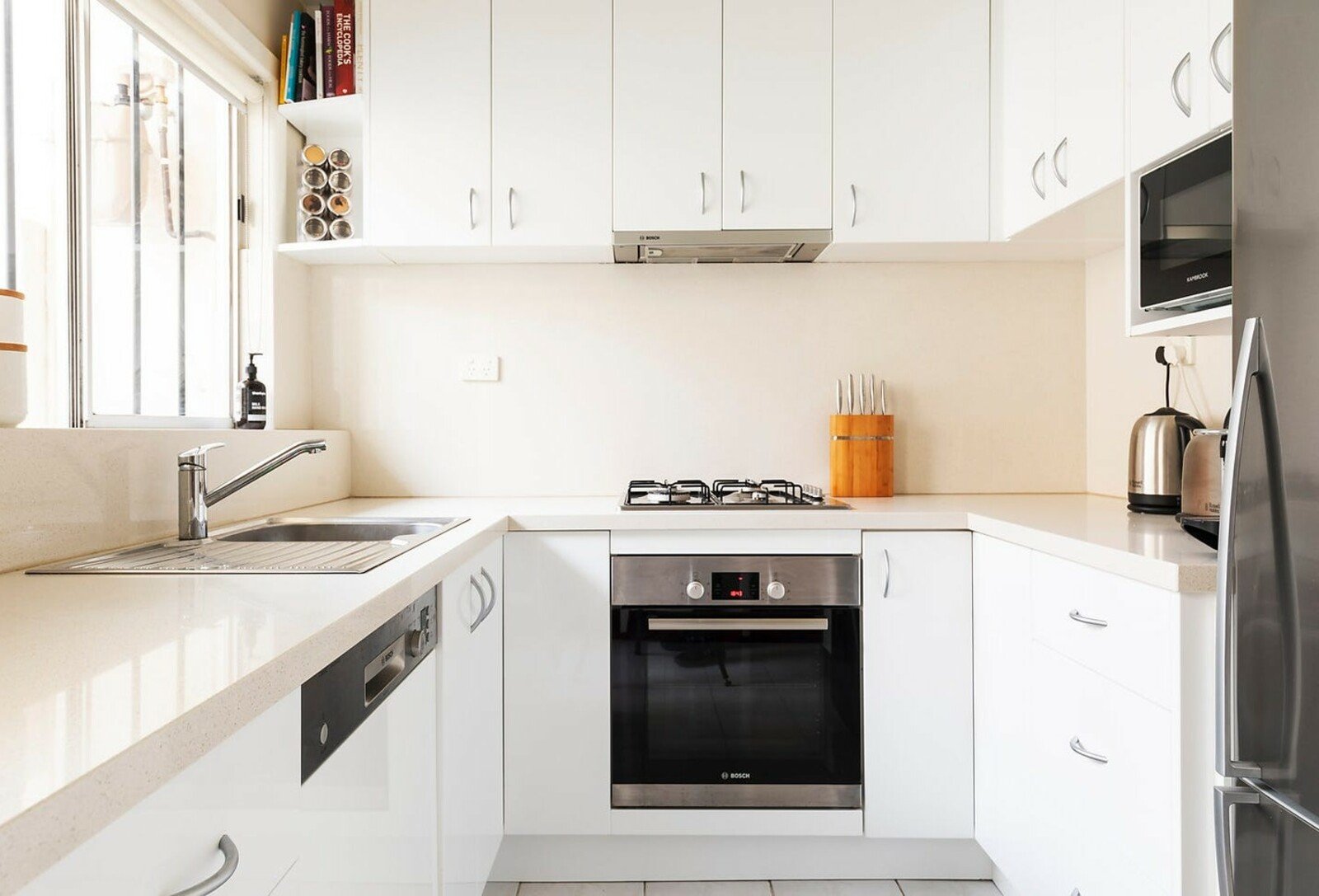• Bosch stainless steel appliances including gas cooktop and dishwasher