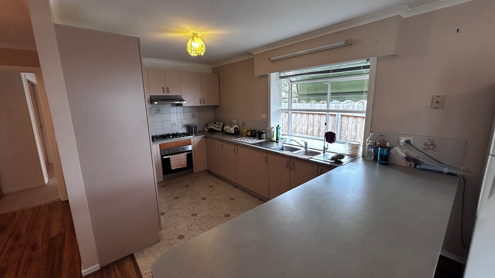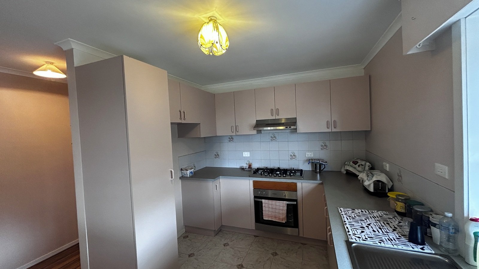 The good size kitchen has plenty of cabinet space, 900mm gas cooktop and oven.