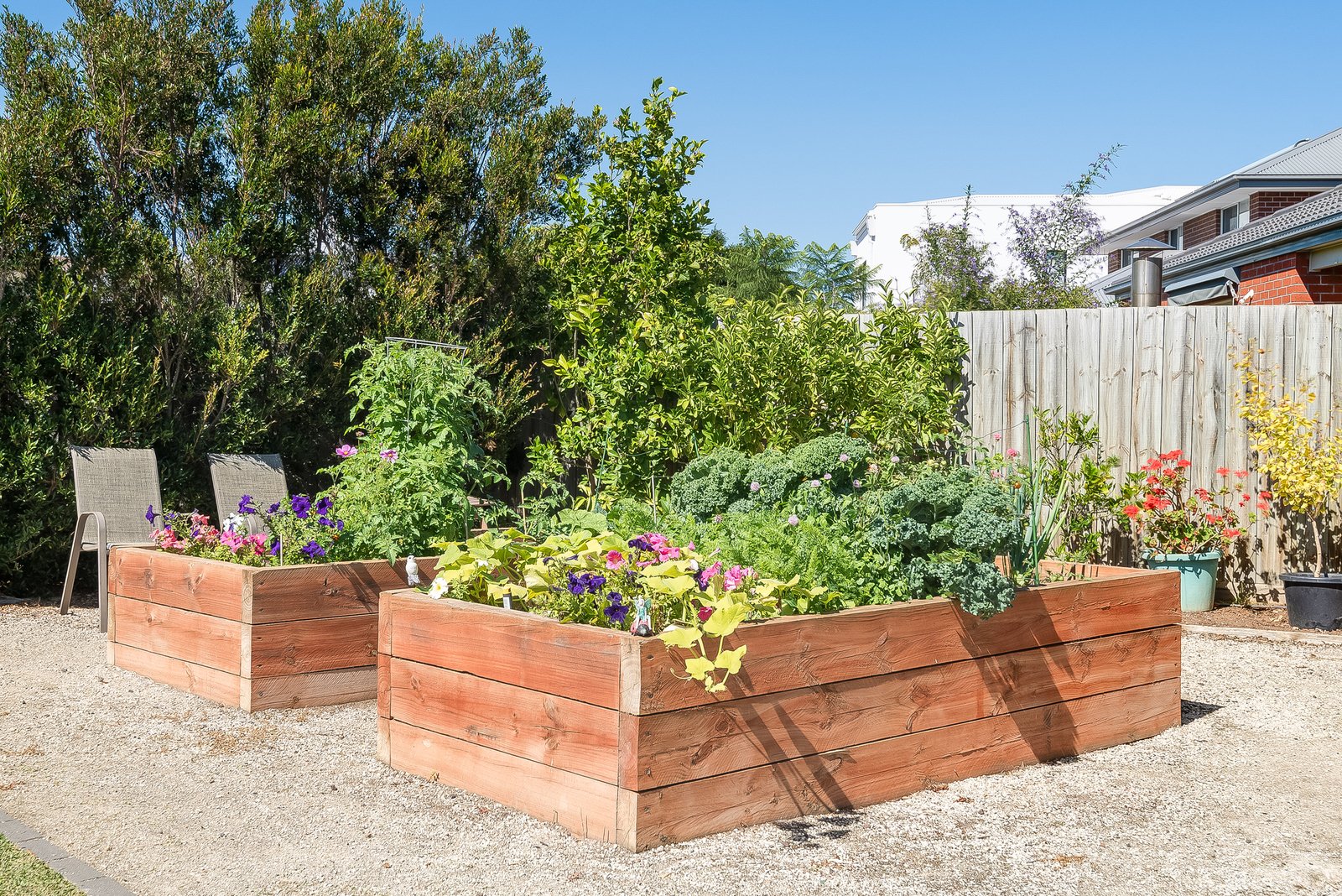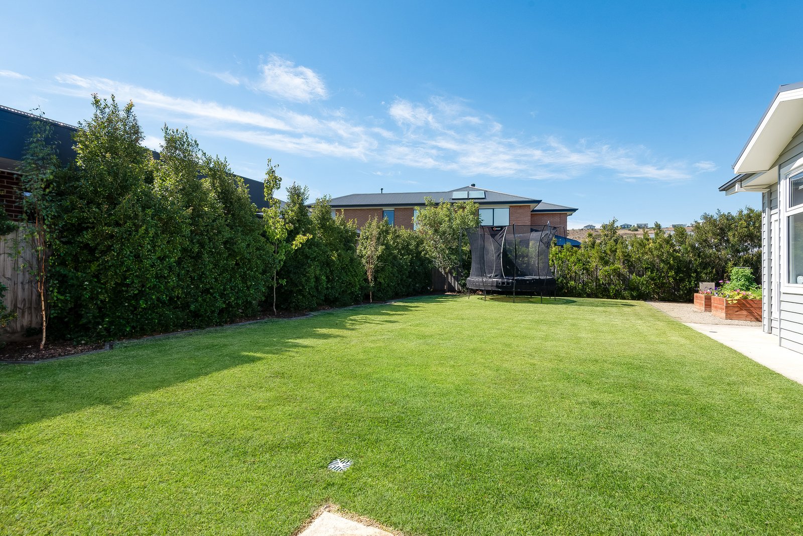 Outside, the undercover alfresco offers a private and sheltered space for relaxing or entertaining, and the huge backyard provides a lush lawn area for the kids to play in a secure setting. Raised veggie beds allow you to grow homegrown produce, with bordering trees creating a tranquil environment. The oversized double garage includes direct internal entry, plus rear roller door access to the backyard for added functionality.