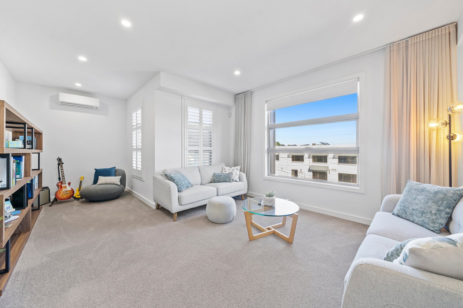Sustainability and efficiency have been prioritised throughout, with the home operating as a fully electrified residence. A substantial solar system comprising 30 panels totalling approximately 14kW is paired with a 24kW Sigen battery, 10kW inverter and a 7kW AC electric vehicle charger, supporting exceptionally low running costs with electricity bills largely limited to connection fees. The home also features an induction cooktop and a reclaim electric hot water system, with gas fully disconnected while retaining the option to reconnect if desired.