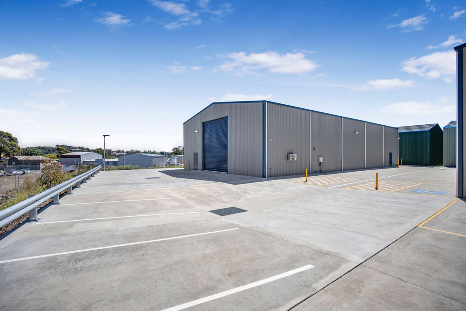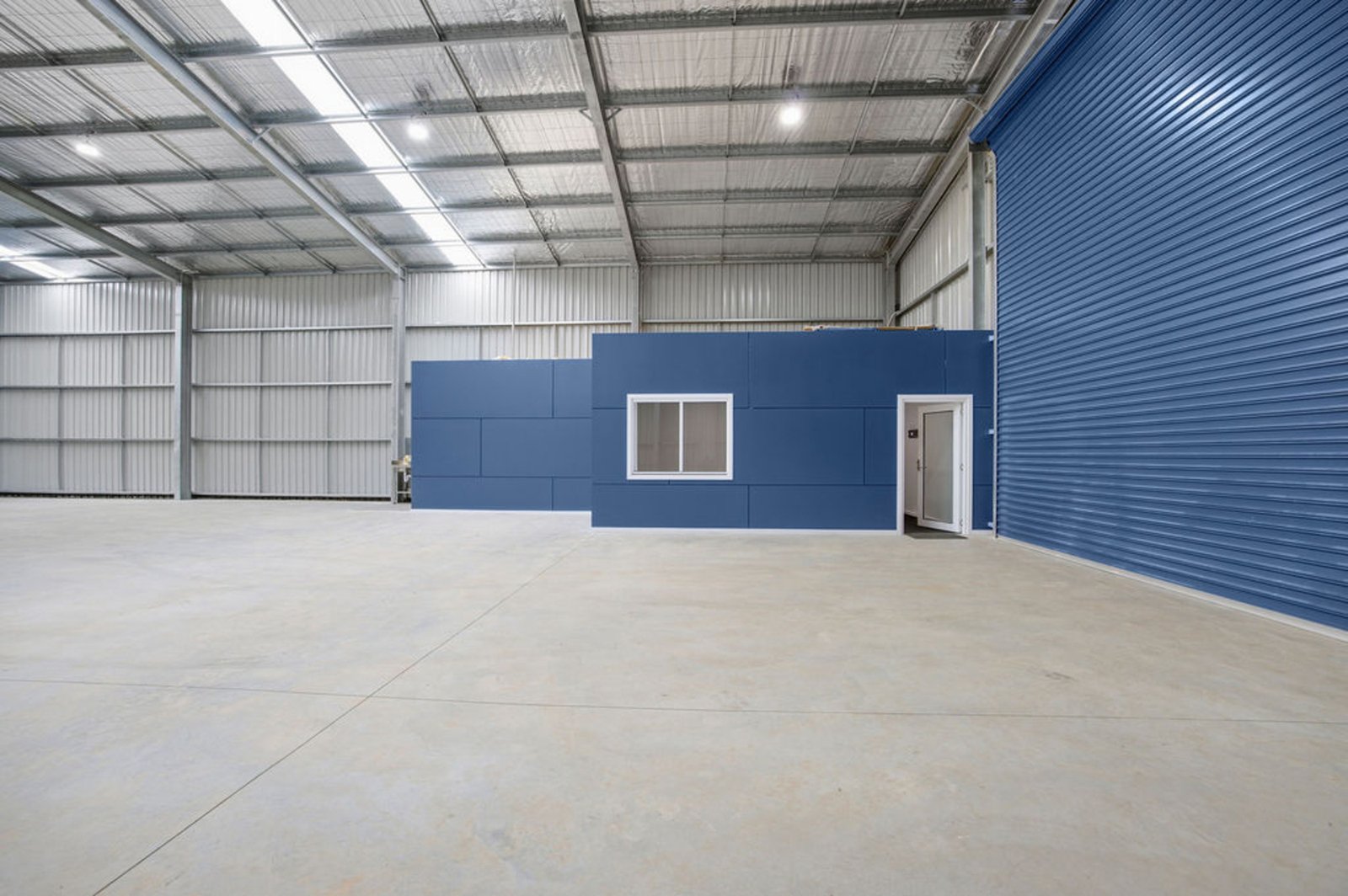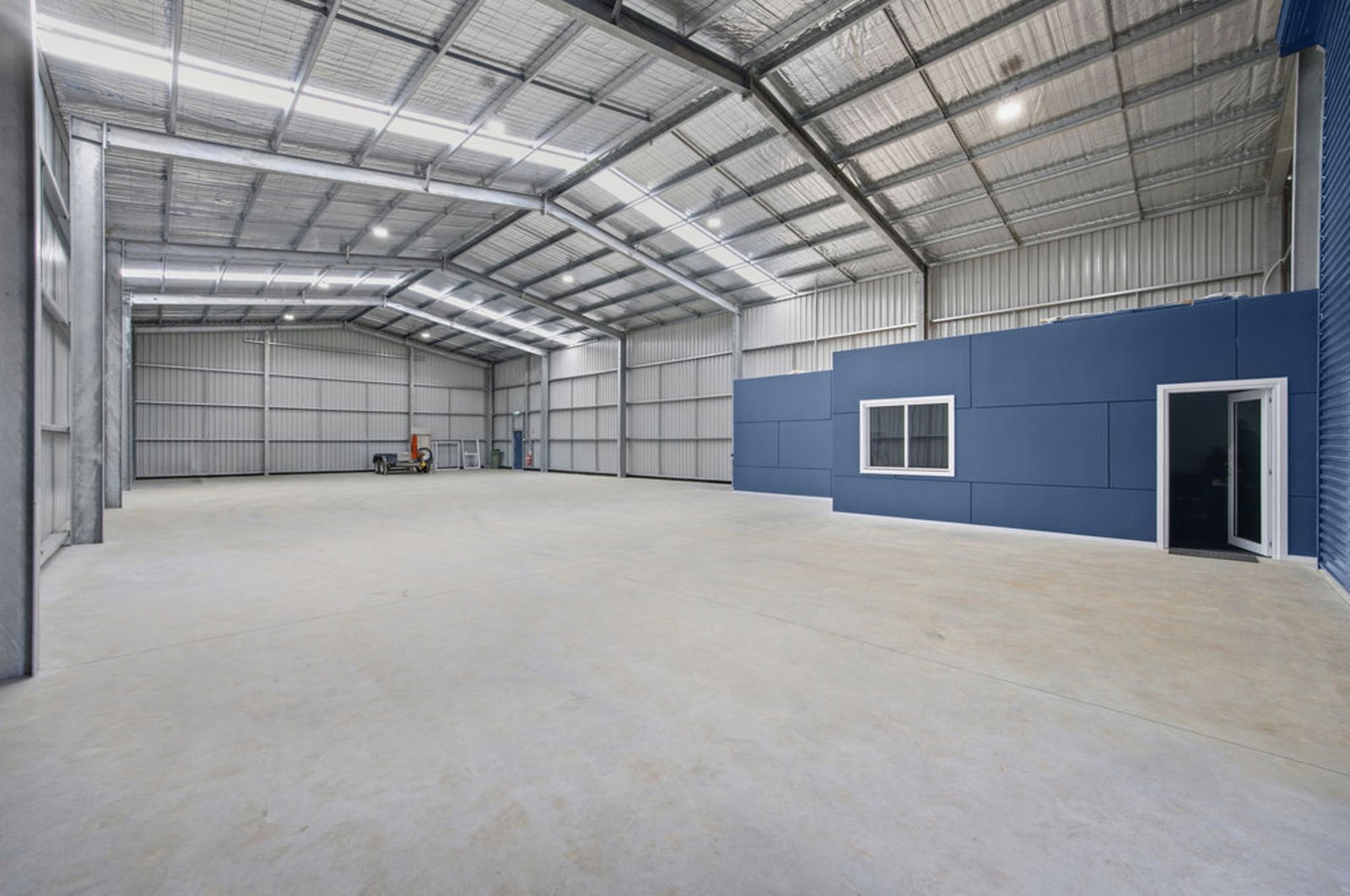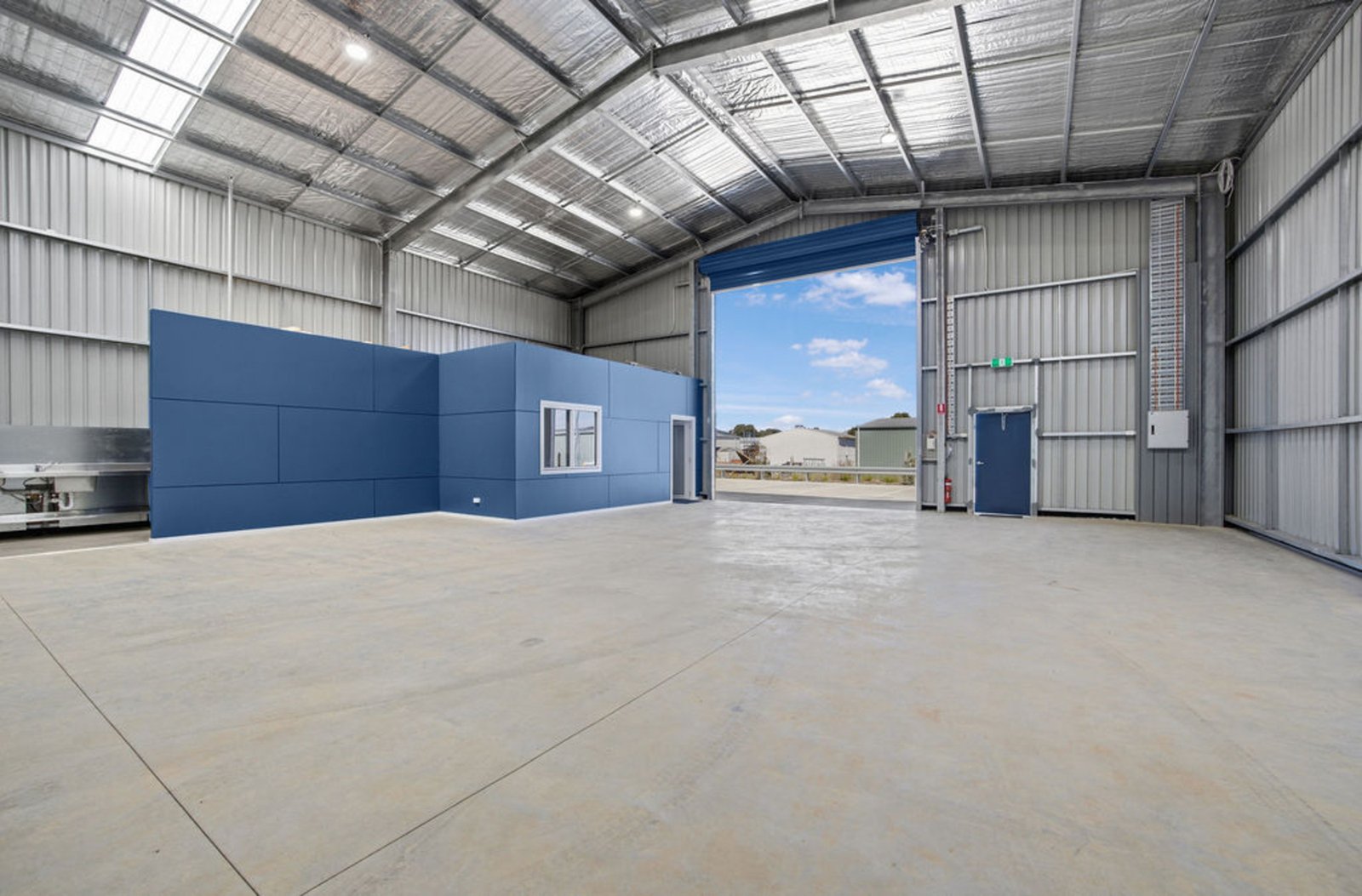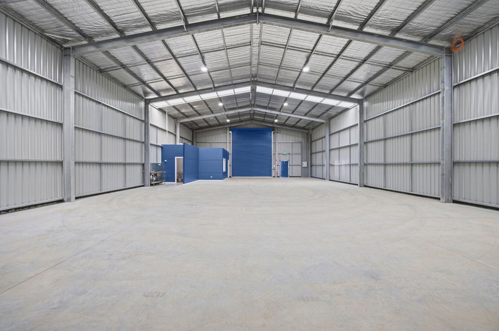 Constructed with quality and durability in mind, the property features a galvanised steel portal frame shed set on a substantial 180mm concrete slab, designed to handle heavy industrial use. Access to the warehouse is excellent with an industrial three-phase roller shutter measuring 5 metres wide and 6 metres high, allowing easy entry for large vehicles, machinery or equipment.