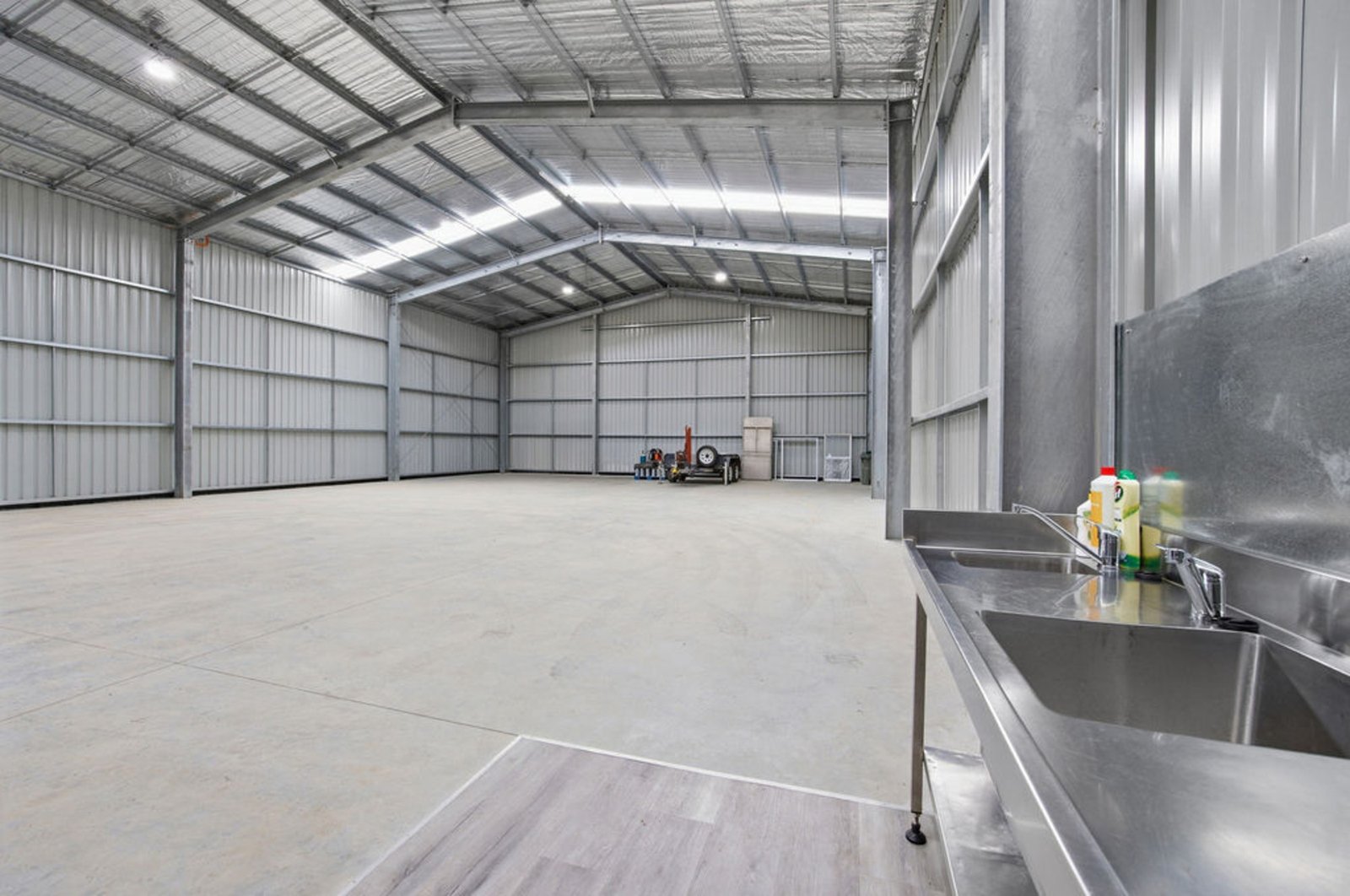 Inside, the warehouse is fitted with high bay lighting and supported by an extensive three-phase power supply (60 amps per phase), making it ideal for manufacturing, mechanical, trade or storage operations.