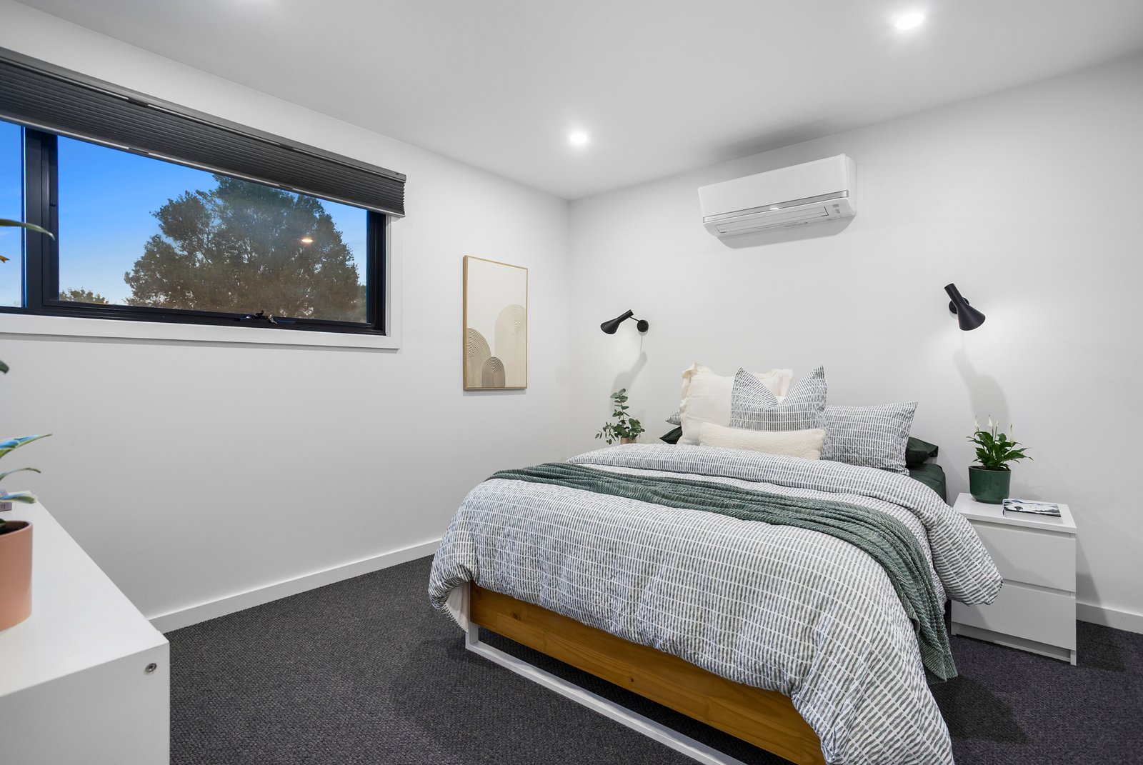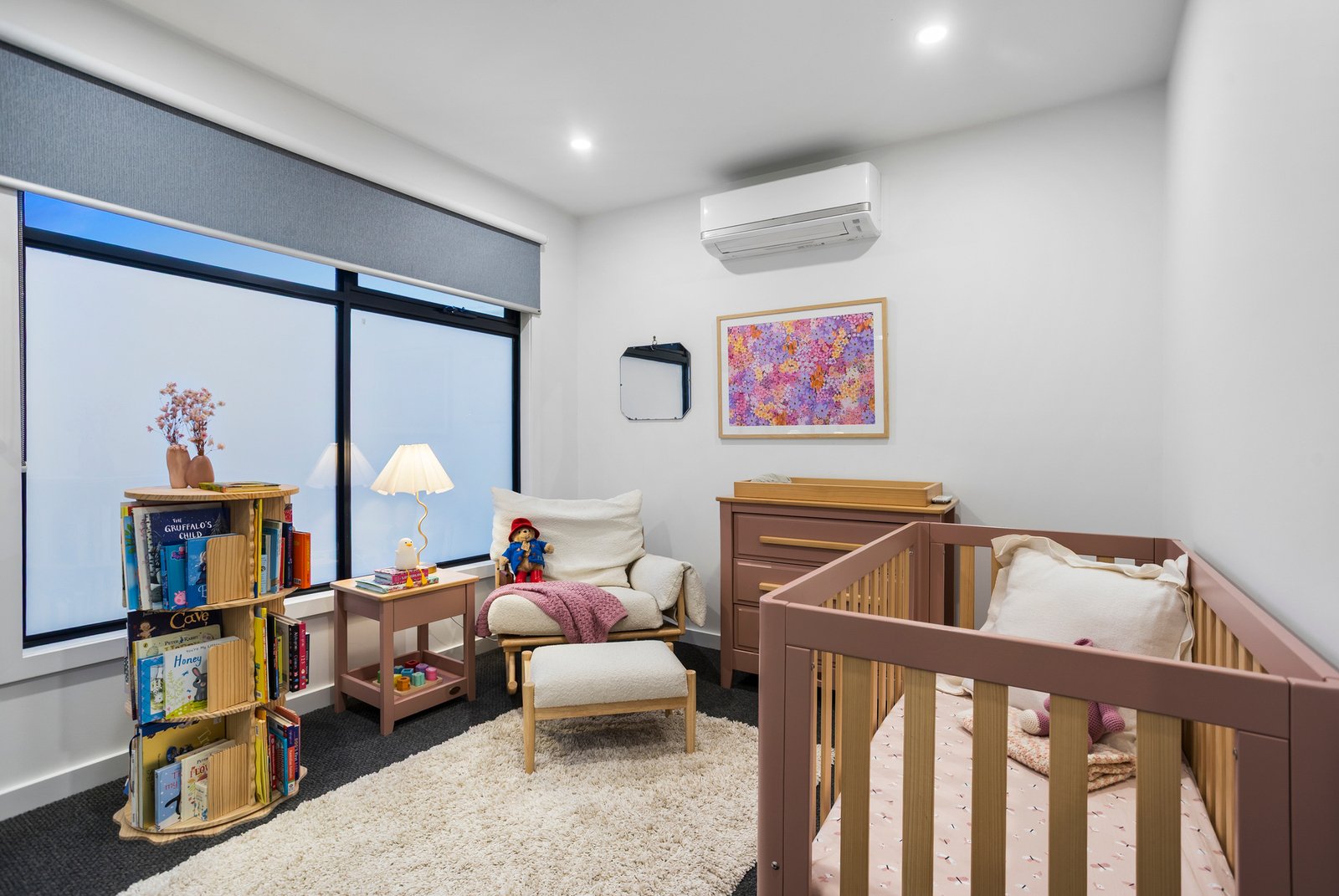 Upstairs, accommodation is equally refined, with three well-proportioned bedrooms including a superb main suite complete with walk-in robe and ensuite. A central family bathroom with bath services the additional bedrooms, while wool carpets and individual Mitsubishi split systems in every room ensure year-round comfort.