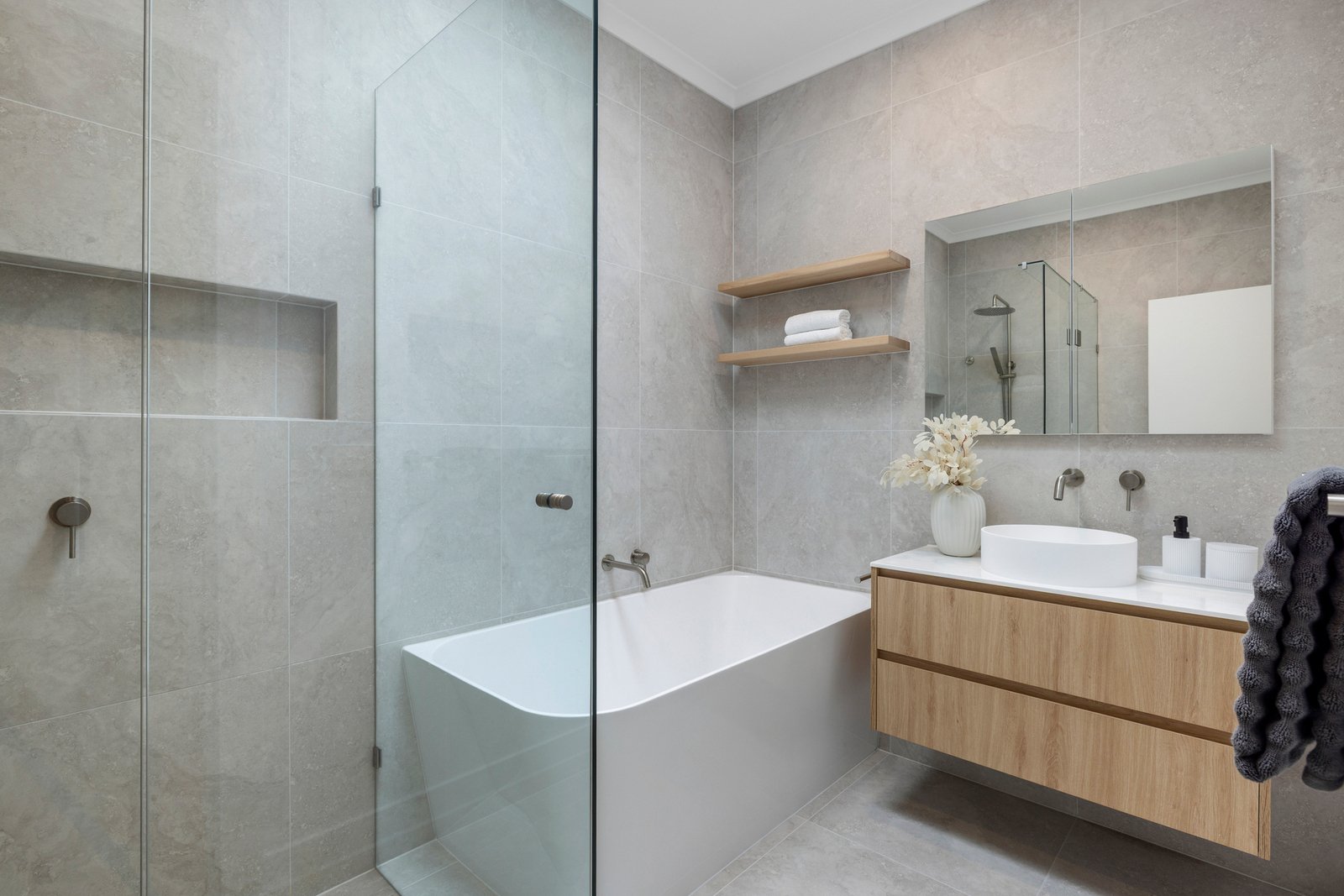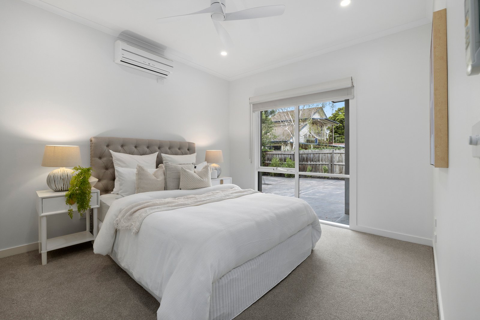 Plush contemporary carpet adds warmth and comfort to the two spacious bedrooms - both with built-in wardrobes - the main with a generous walk-in robe. These rooms share the stunning bathroom which has beautifully renovated to feature floor-to-ceiling tiles, a bath and floating vanity. A separate WC, superb concealed laundry and split system heating/cooling are also offered along with a lock up garage.