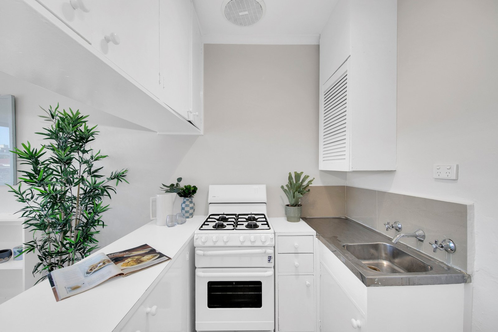 A well-appointed kitchen features gas cooking and a practical breakfast bar, overlooking a light-filled open-plan living and dining domain framed by expansive picture windows. The generous bedroom includes built-in robes and picturesque outlooks, while a recently renovated bathroom showcases floor-to-ceiling tiles and a sleek fully tiled shower. Superbly positioned on the top floor of a boutique mid-century Brixham building (one of just 12), the apartment also includes secure intercom entry, off-street parking, roller blinds and NBN connectivity.
