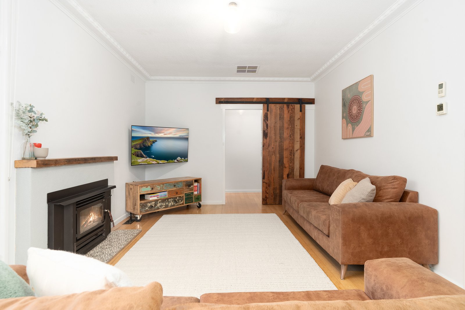Beautifully presented and ready to enjoy, the home has been freshly painted throughout and offers a warm, inviting feel from the moment you step inside. A spacious updated kitchen with stainless steel appliances anchors the heart of the home, while the adjoining living and dining zone is filled with natural light and enhanced by the charm of an open fireplace.